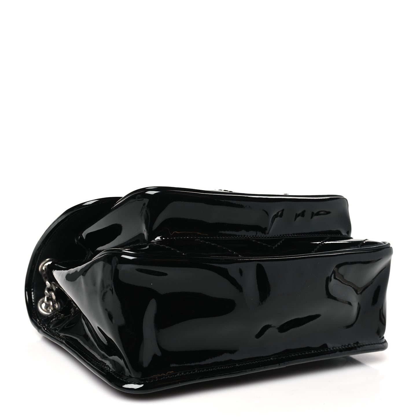 Faux Patent Matelasse Monogram Medium Niki Chain Satchel Black