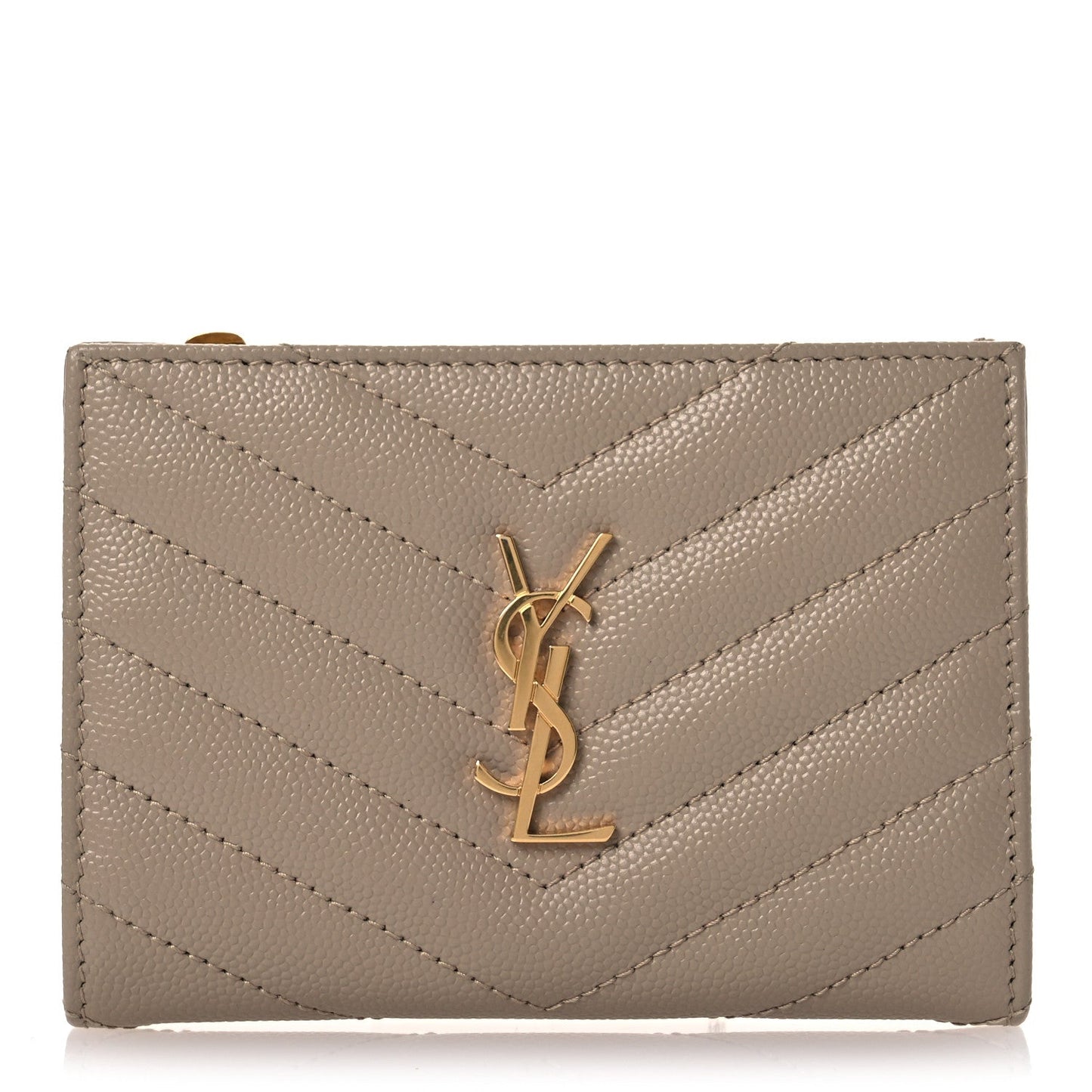 Saint Laurent/ Accessories/ Wallets /Saint Laurent Grain De Poudre Matelasse Chevron Cassandre Fragments Zipperred Bi-Fold Wallet Dark Beige