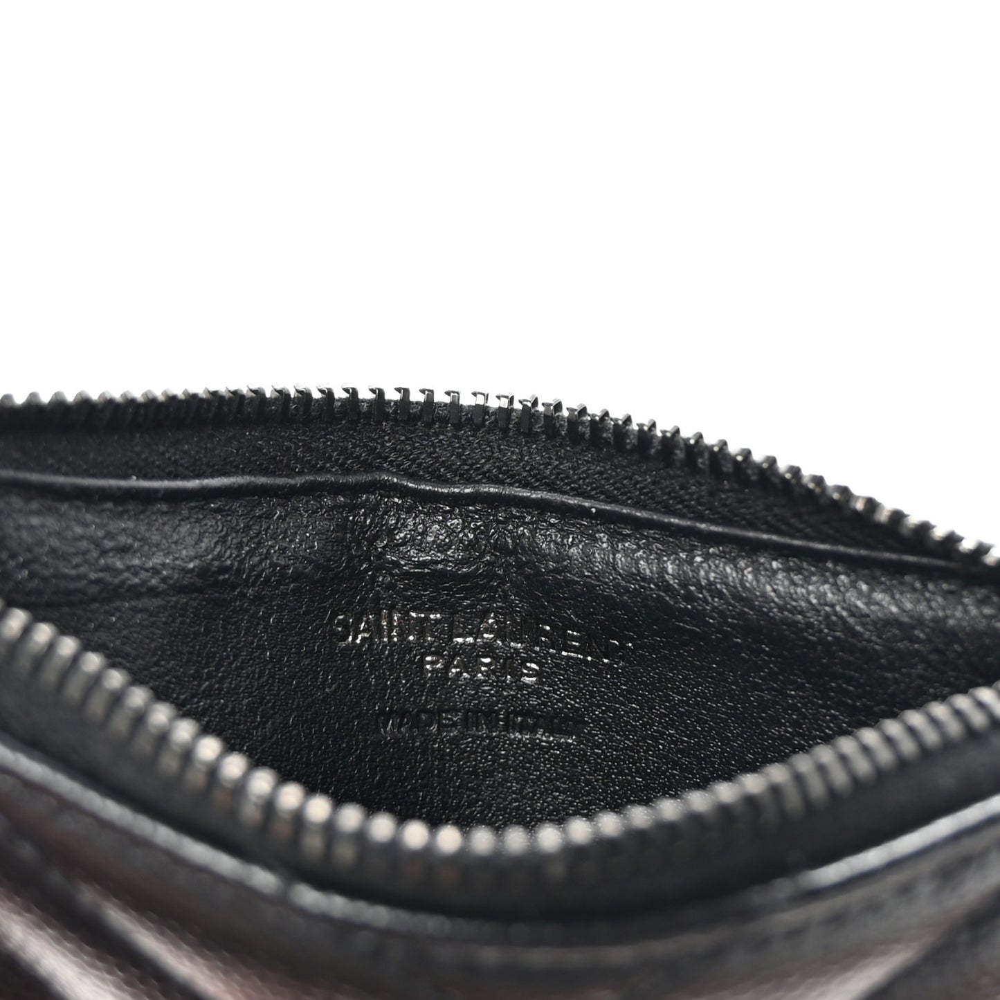 Saint Laurent/ Accessories/ Wallets /Saint Laurent Grain De Poudre Matelasse Chevron Monochrome Fragments Zippered Card Case Black