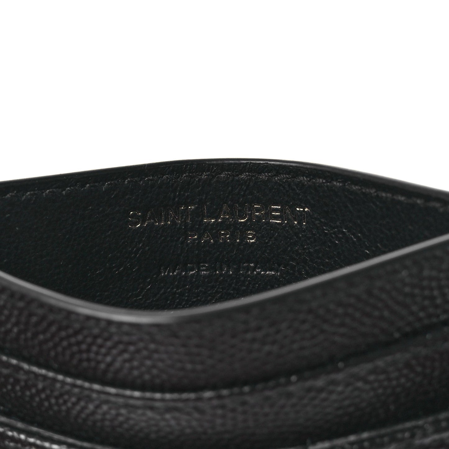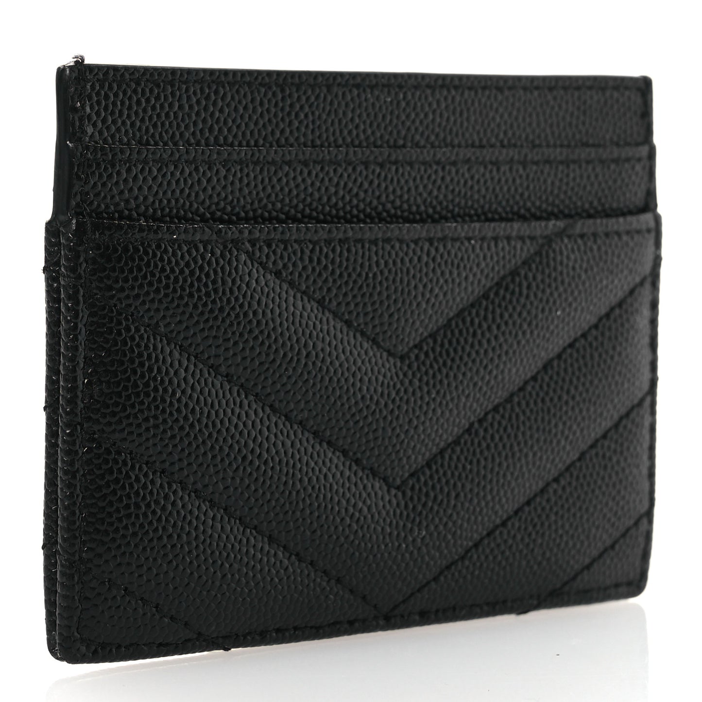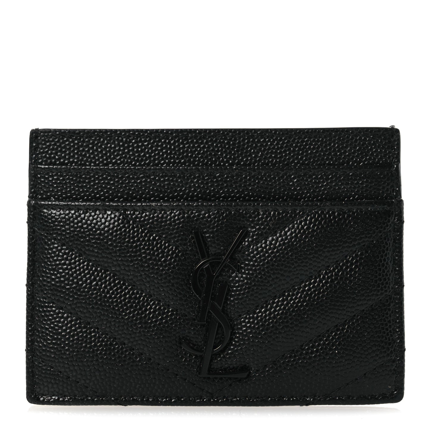 This is an authentic SAINT LAURENT Grain De Poudre Matelasse Chevron Monochrome Monogram Credit Card Case in Black. This stylish and petite wallet is crafted of grained calfskin leather in black. The case features a prominent black YSL logo that has multiple credit card slots and opens to a black fabric interior.Follow this item for alerts. Saint Laurent is a registered trademark of Saint Laurent. FASHIONPHILE is not affiliated with Saint Laurent.