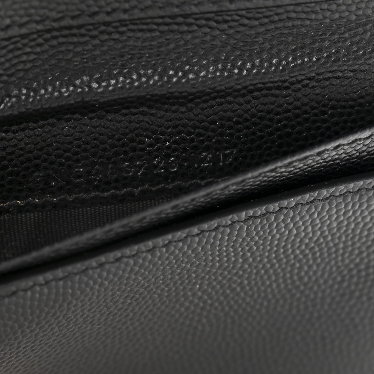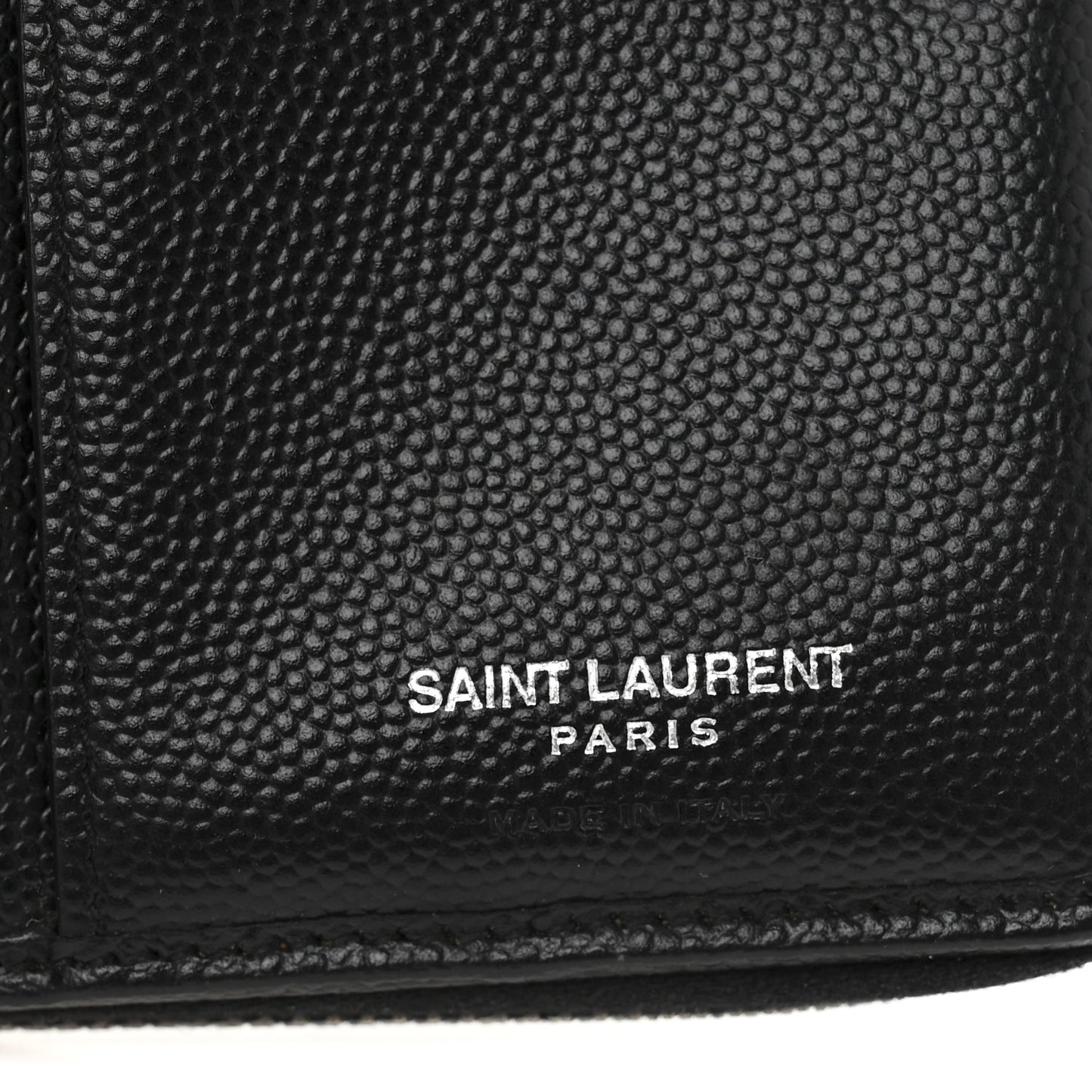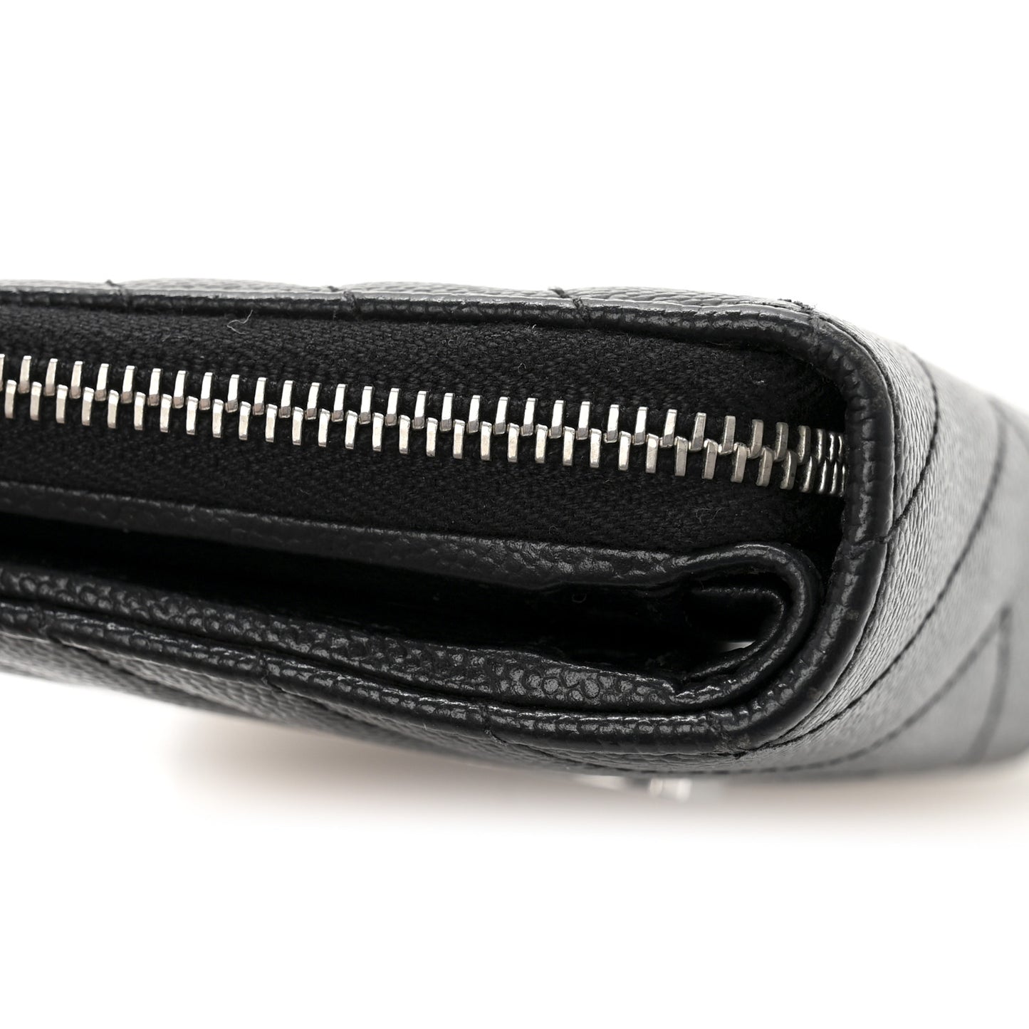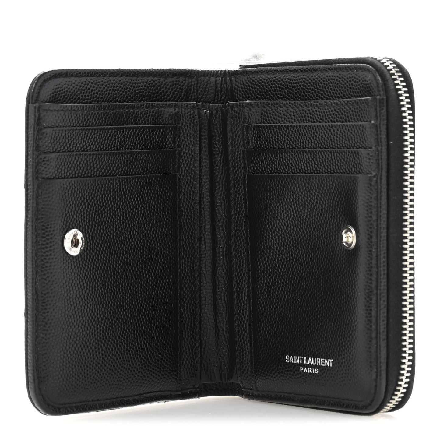 This is an authentic SAINT LAURENT Grain De Poudre Matelasse Chevron Monogram Compact Zip Around Wallet in Black. This chic wallet is crafted of grained calfskin leather in black, with a silver YSL monogram detail on the front. The wallet snaps open to a matching leather interior with card slots, a bill compartment, and a zipper pocket.Follow this item for alerts. Saint Laurent is a registered trademark of Saint Laurent. FASHIONPHILE is not affiliated with Saint Laurent.