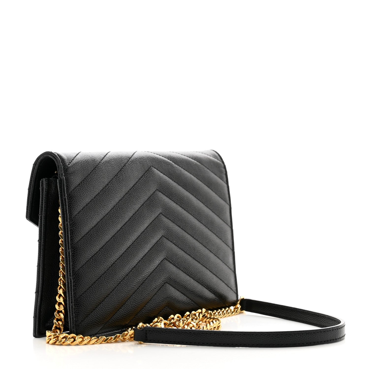 Saint Laurent/ Bags/ Handbags /Saint Laurent Grain De Poudre Matelasse Chevron Monogram Envelope Chain Wallet Black