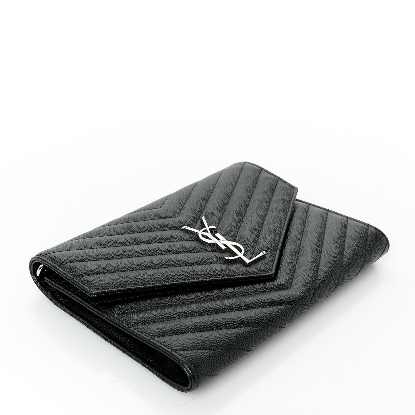 Saint Laurent/ Accessories/ Clutch & Evening /Saint Laurent Grain De Poudre Matelasse Chevron Monogram Envelope Clutch Black