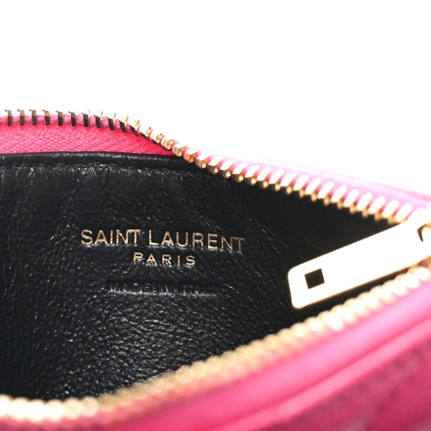 Saint Laurent/ Accessories/ Wallets /Saint Laurent Grain De Poudre Matelasse Chevron Monogram Fragments Zippered Card Case Fresh Fuxia