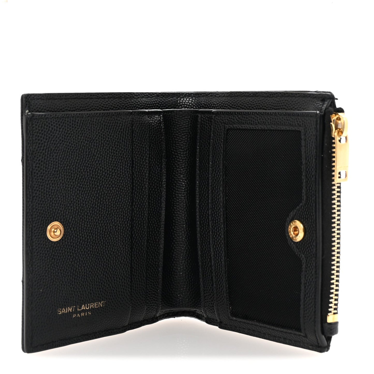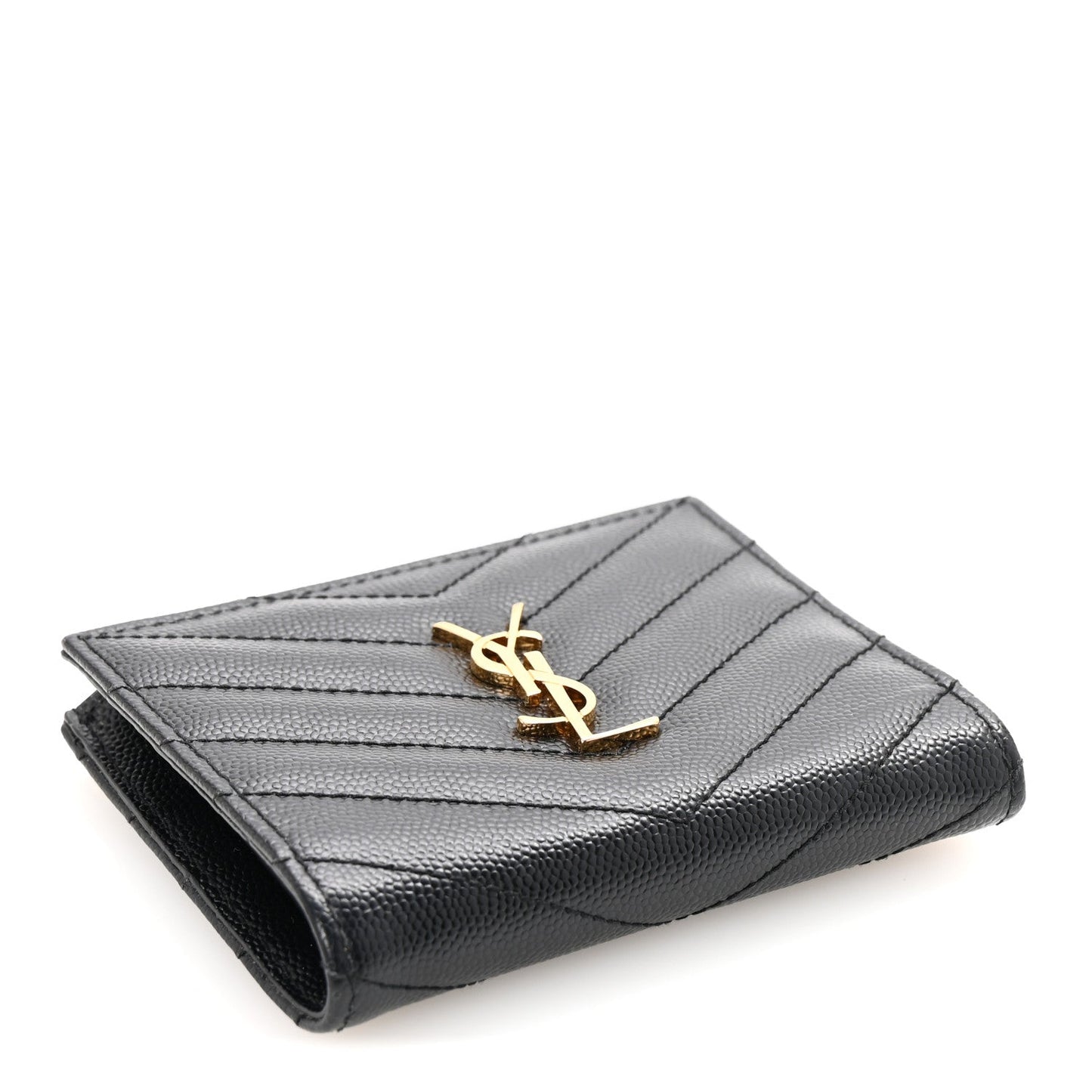 This is an authentic SAINT LAURENT Grain De Poudre Matelasse Chevron Monogram Zipped Card Case in Black. This elegant wallet features fine pebbled chevron quilting in black. It features a prominent gold YSL logo on the front and opens to a black leather interior with card slots, bill fold and a zipper compartment.Follow this item for alerts. Saint Laurent is a registered trademark of Saint Laurent. FASHIONPHILE is not affiliated with Saint Laurent.