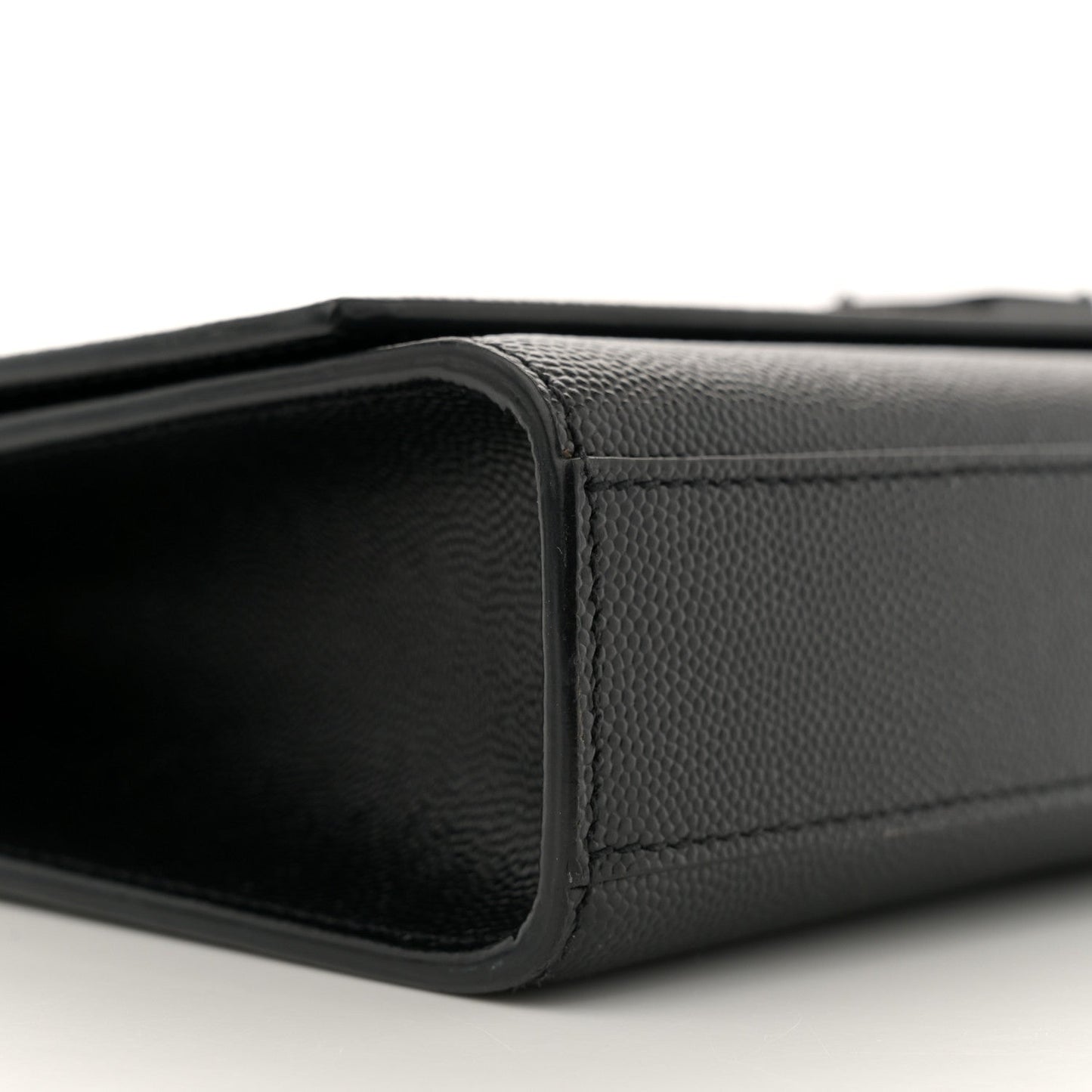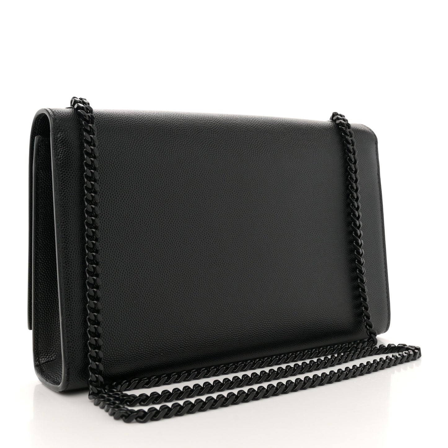 This is an authentic SAINT LAURENT Grain De Poudre Medium Classic Monogram Monochrome Kate Satchel in Black. This stylish shoulder bag is crafted of finely pebbled calfskin leather in black. This bag features a black chain shoulder strap and a black YSL logo. The flap opens to a black fabric interior with a patch pocket.Follow this item for alerts. Saint Laurent is a registered trademark of Saint Laurent. FASHIONPHILE is not affiliated with Saint Laurent.