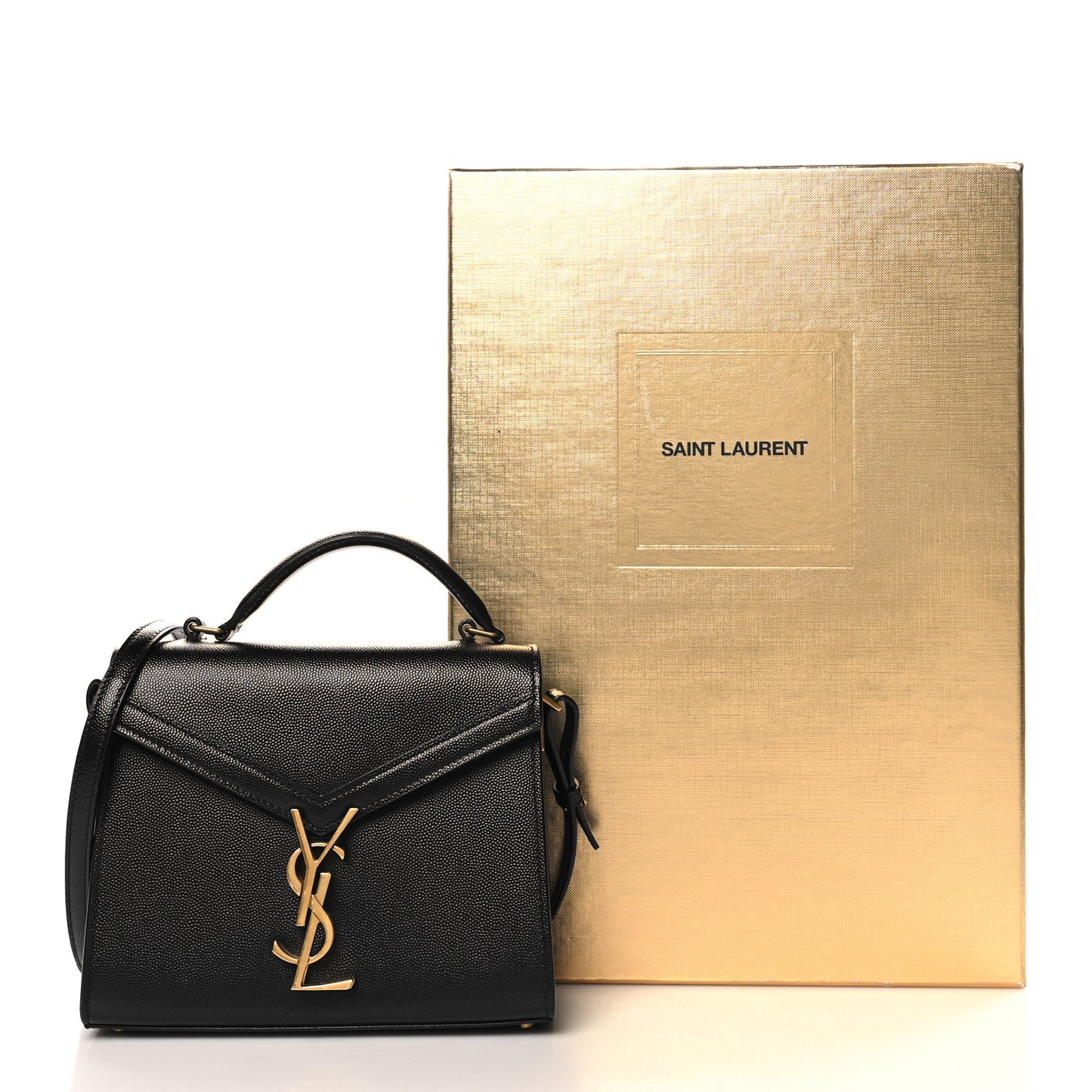 This is an authentic SAINT LAURENT Grain de Poudre Mini Classic Monogram Cassandra Top Handle in Black. This chic shoulder bag is crafted of pebble grain black leather. The bag features a rear patch pocket, gusseted side panels, a sturdy leather top handle, and an optional, adjustable shoulder strap with gold hardware. The envelope-style crossover flap opens with a matching gold YSL monogram press lock to a partitioned black leather interior with a patch pocket.Follow this item for alerts. Saint Laurent is a registered trademark of Saint Laurent. FASHIONPHILE is not affiliated with Saint Laurent.