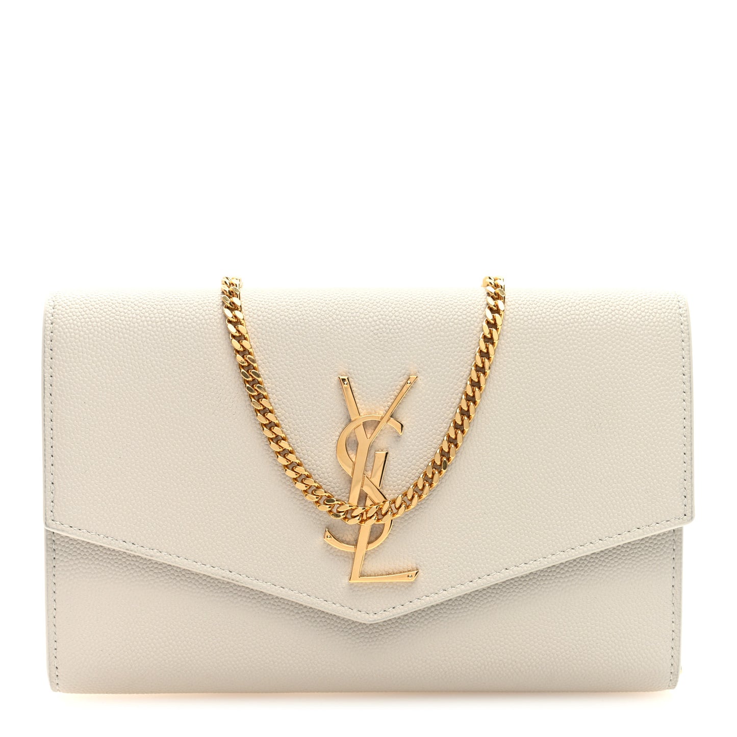 Saint Laurent/ Bags/ Handbags /Saint Laurent Grain De Poudre Monogram Uptown Chain Wallet Crema Soft