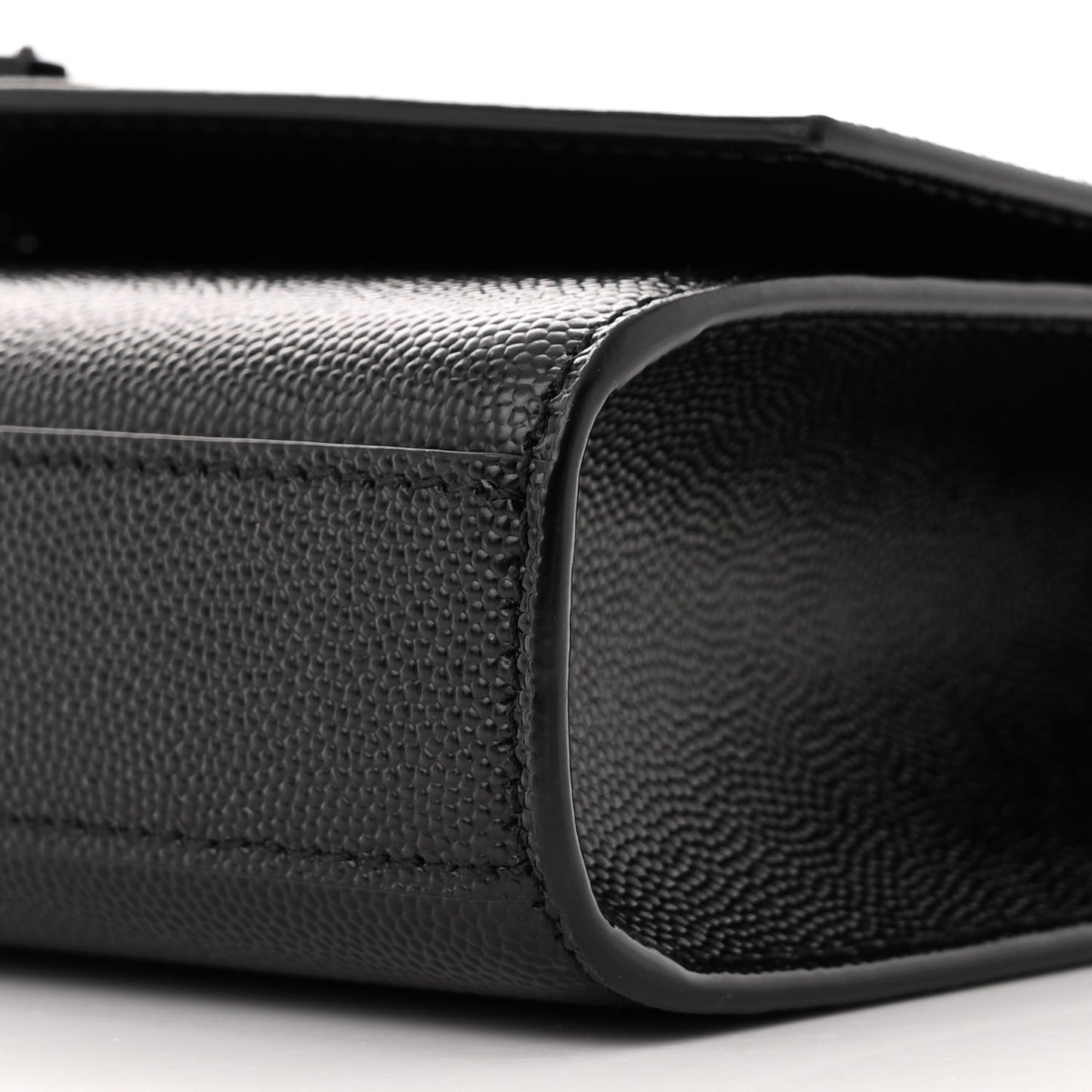 This is an authentic SAINT LAURENT Grain De Poudre Small Monogram Monochrome Kate Satchel in Black. This stylish shoulder bag is crafted of finely pebbled calfskin leather in black. The bag features a black chain link shoulder strap and a full-facing flap with the classic black YSL logo. The bag opens to a black fabric interior with a leather patch pocket.Follow this item for alerts. Saint Laurent is a registered trademark of Saint Laurent. FASHIONPHILE is not affiliated with Saint Laurent.