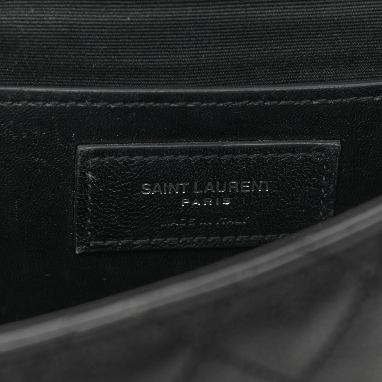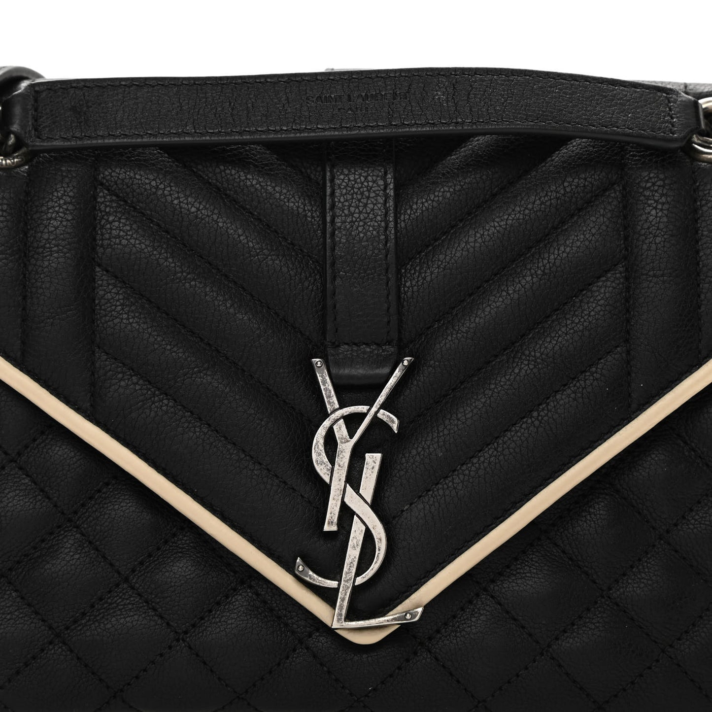 Saint Laurent/ Bags/ Shoulder Bags /Saint Laurent Grained Calfskin Tri-Quilt Monogram Medium College Bag Black White