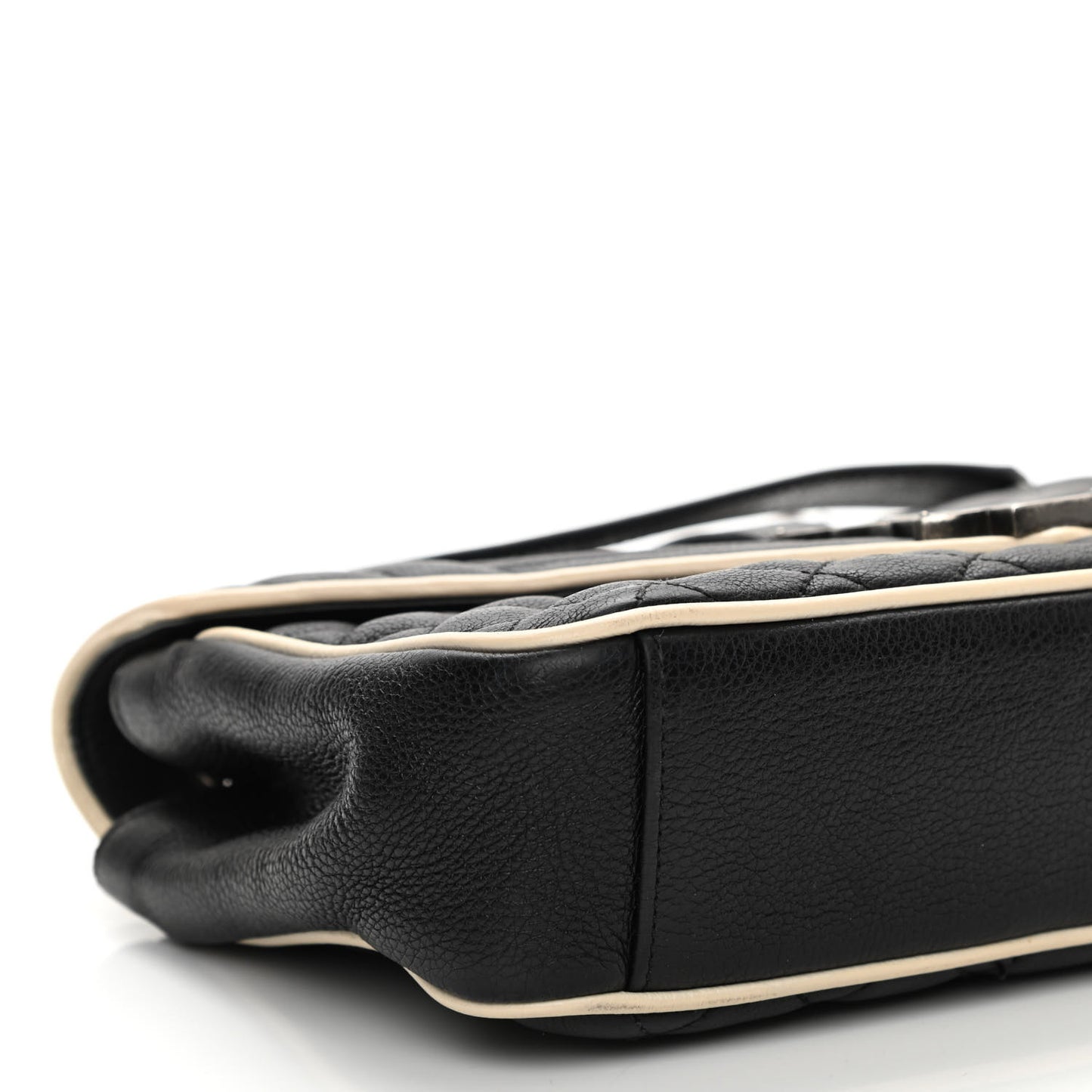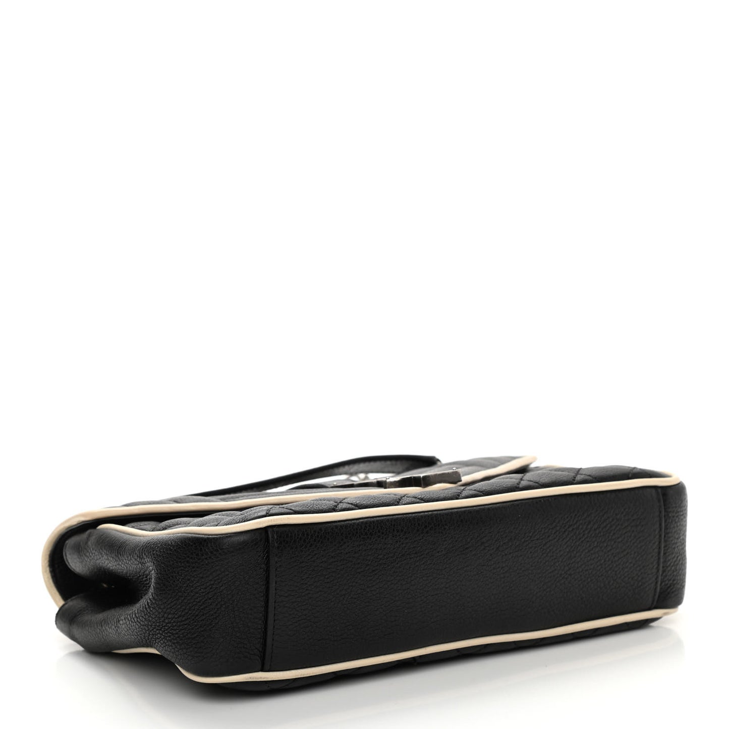 Grained Calfskin Tri-Quilt Monogram Medium College Bag Black White