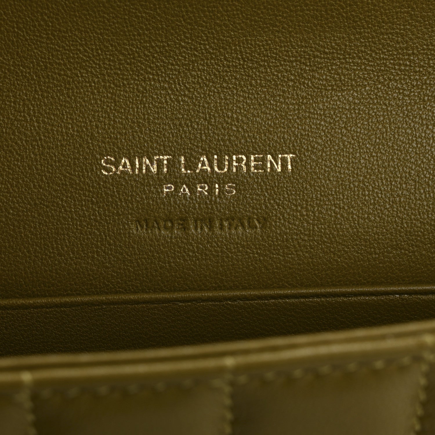 Saint Laurent/ Bags/ Accessories /Saint Laurent Lambskin Carre Quilted Cassandre Small Envelope Wallet Olive Drab
