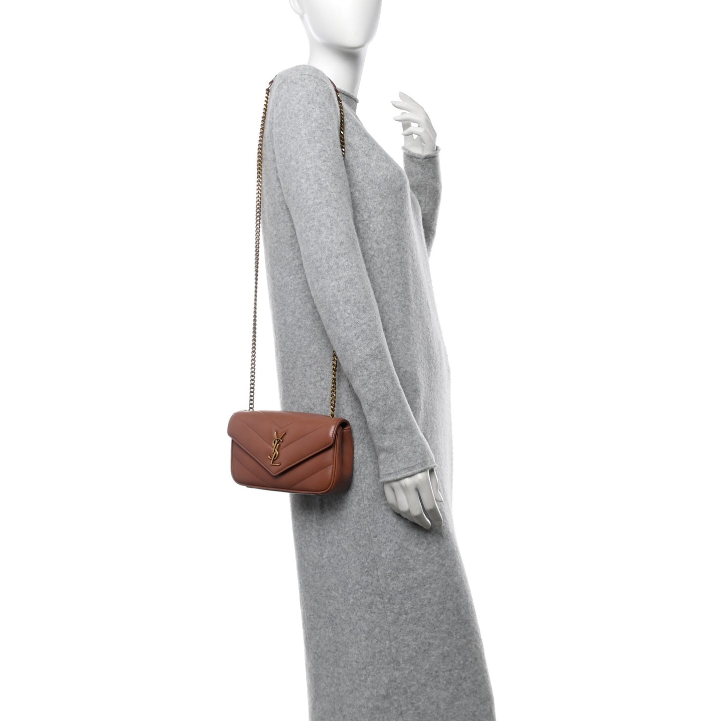 This is an authentic SAINT LAURENT Lambskin Chevron Quilted Mini Loulou Bag in Barely Pink.This chic shoulder bag is crafted of beautiful quilted lambskin leather in dark pink. It features a crossbody strap and an aged gold YSL logo on the face. The flap opens to a black leather interior with a patch pocket and a removable pouch.Follow this item for alerts. Saint Laurent is a registered trademark of Saint Laurent. FASHIONPHILE is not affiliated with Saint Laurent.