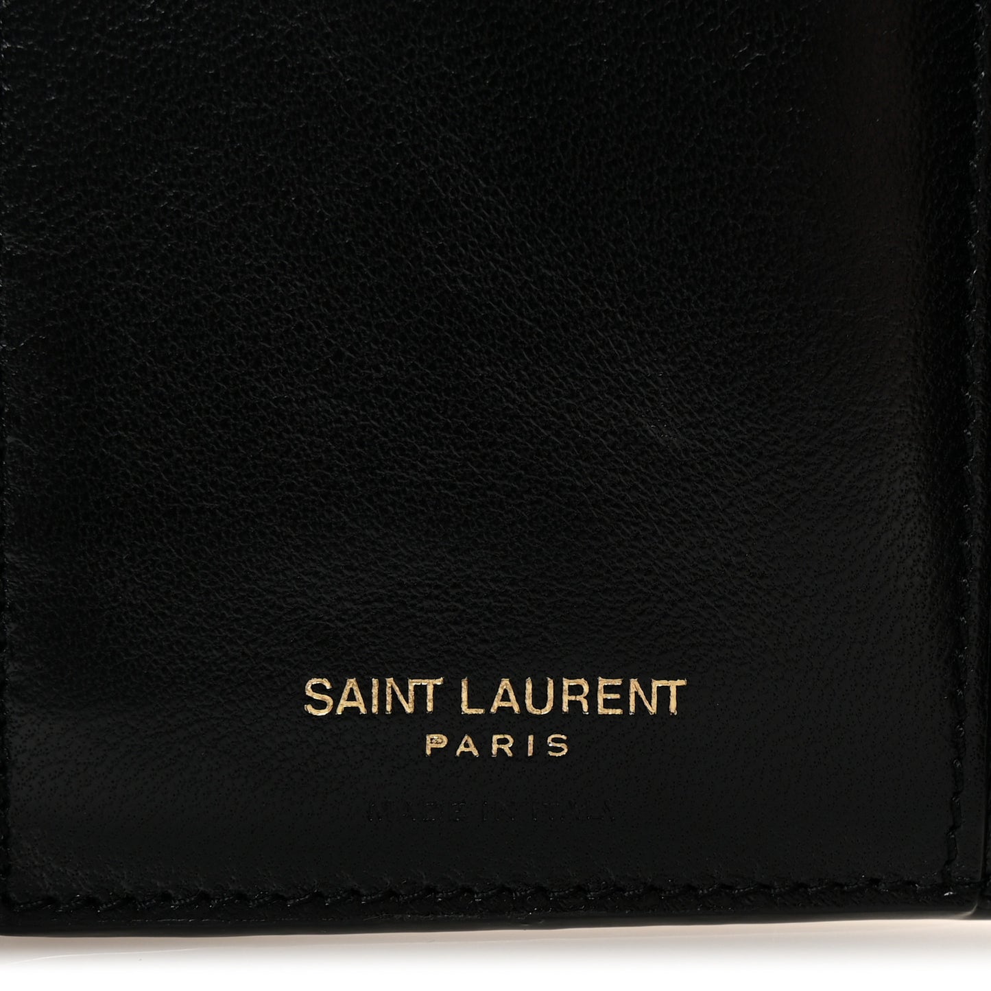 Saint Laurent/ Accessories/ Wallets /Saint Laurent Lambskin Matelasse Chevron Monogram Compact Tri Fold Wallet Black