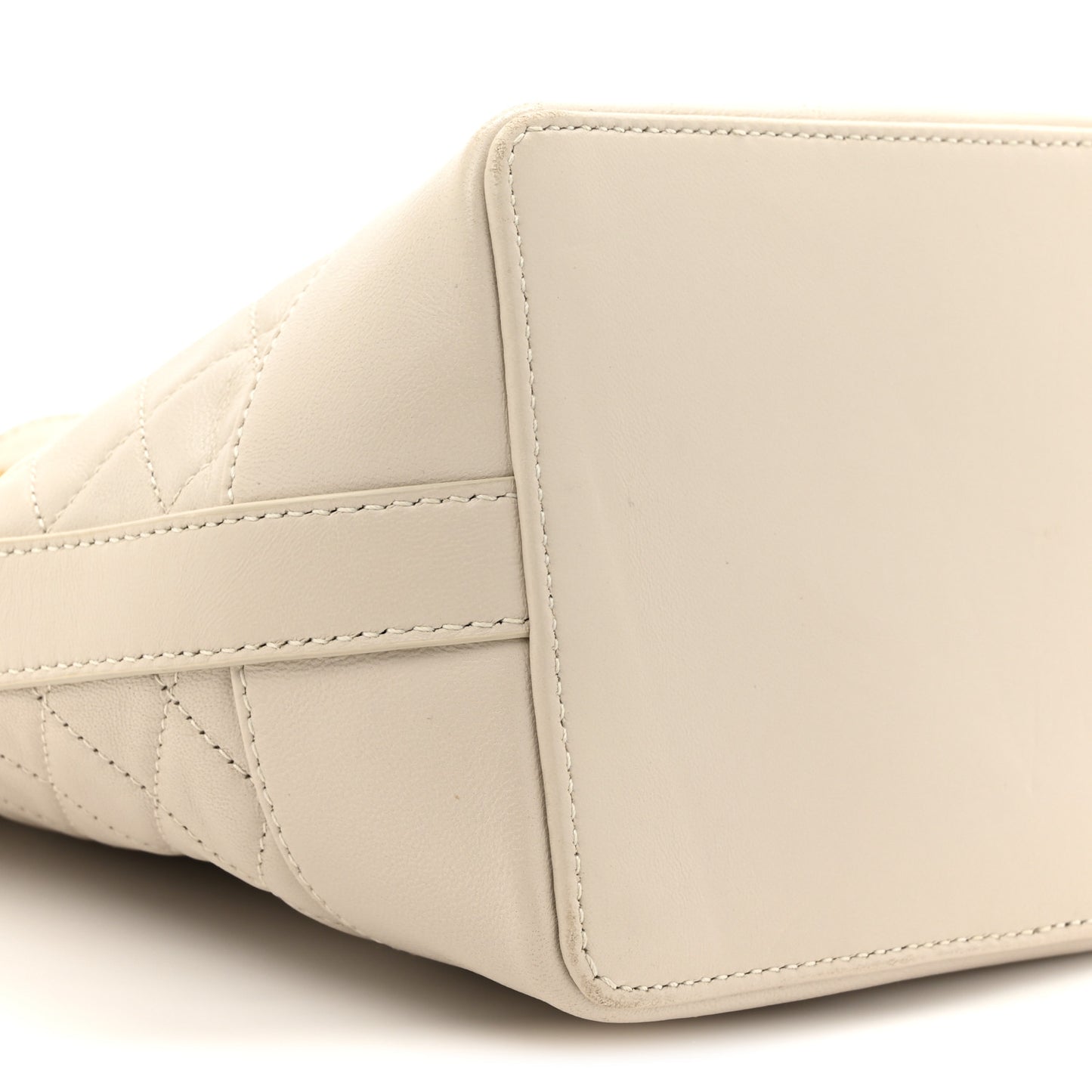 This is an authentic SAINT LAURENT Lambskin Quilted Small Emmanuelle Bucket Bag in Antique Vintage. This classic bucket shape bag is crafted of quilted lambskin leather in white. The bag features a drawstring top, a leather and gold chain top handle, an optional leather shoulder strap, and gold hardware. The top opens to a spacious black fabric interior with a pocket.Follow this item for alerts. Saint Laurent is a registered trademark of Saint Laurent. FASHIONPHILE is not affiliated with Saint Laurent.