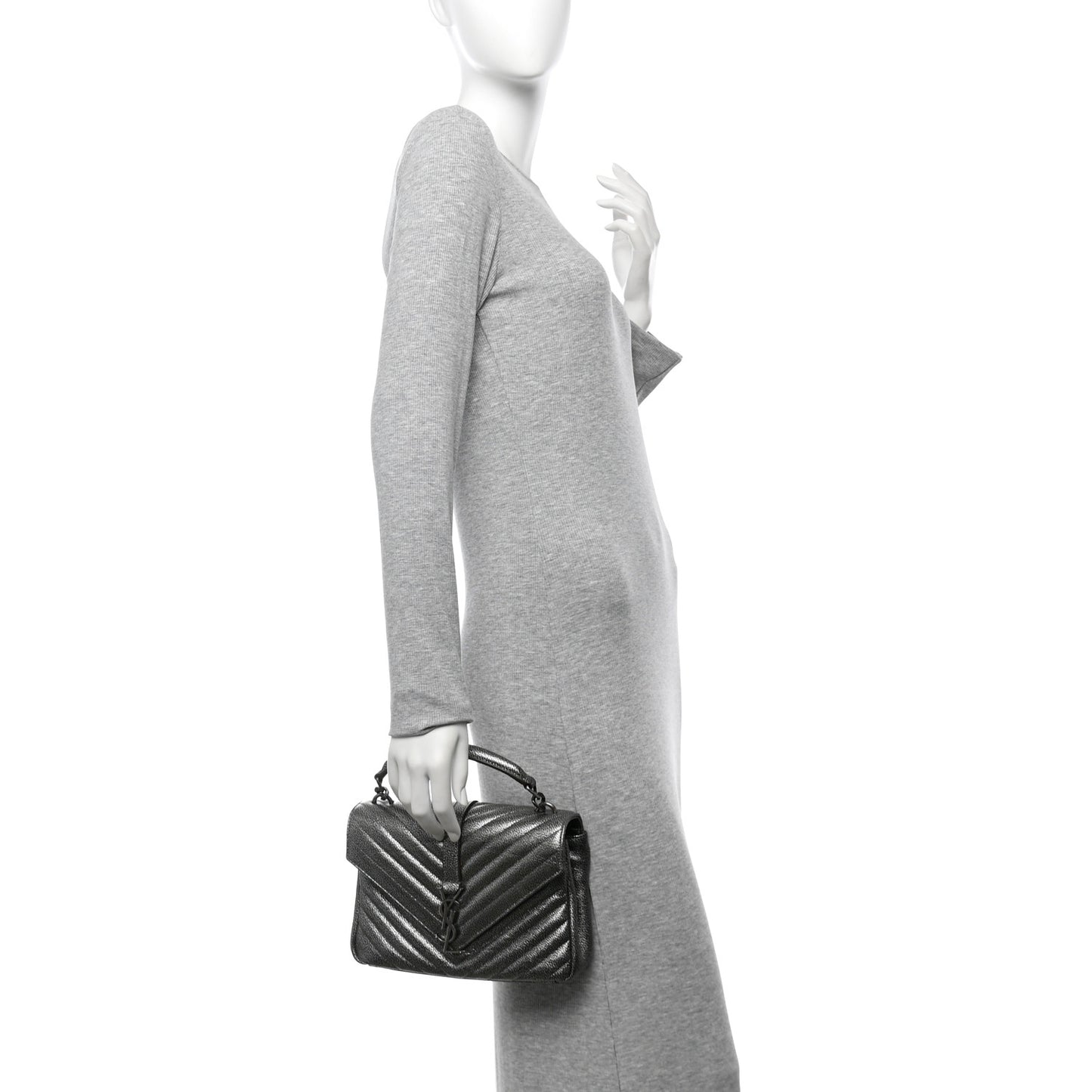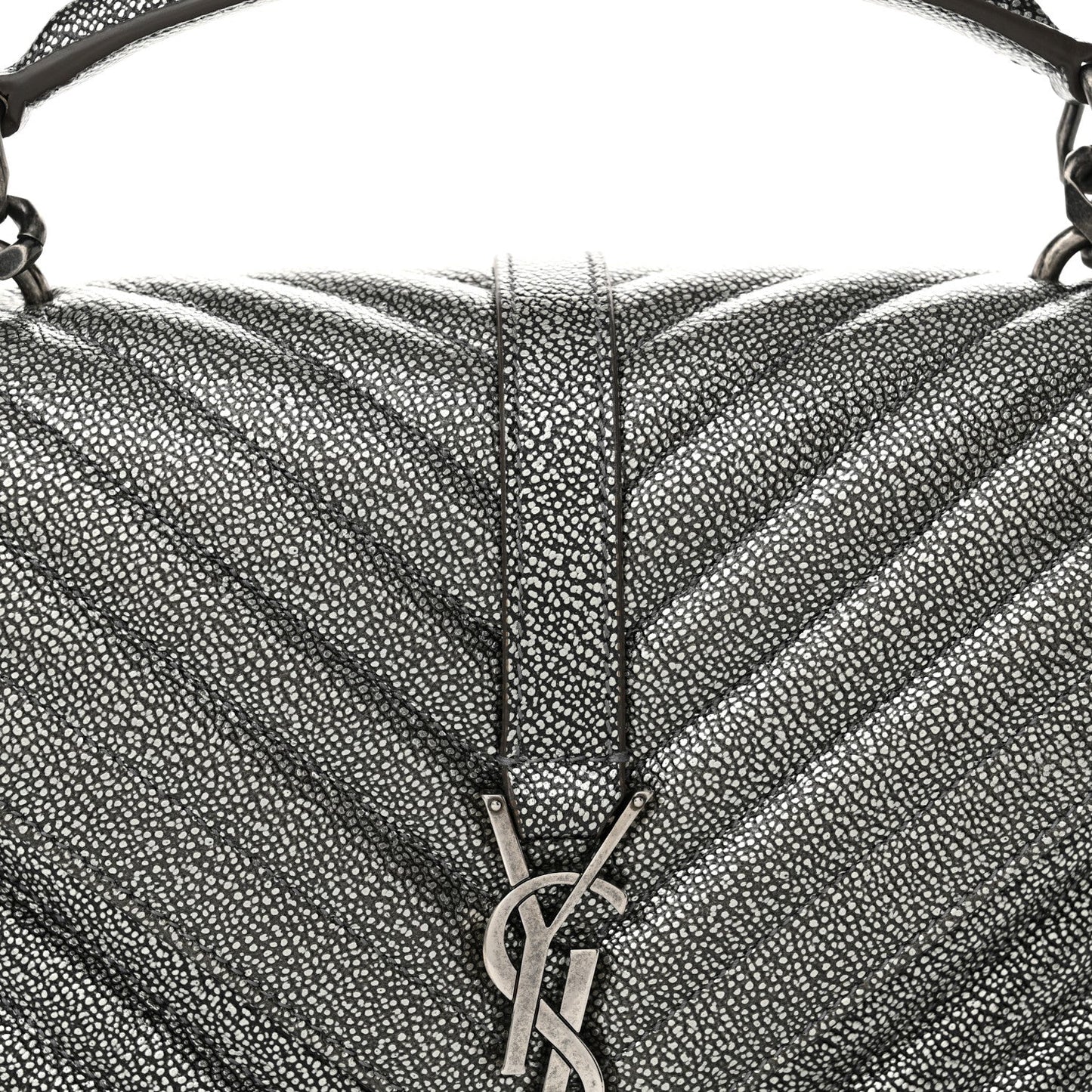 Saint Laurent/ Bags/ Handbags /Saint Laurent Metallic Grain De Poudre Matelasse Chevron Monogram Medium College Bag Gunmetal