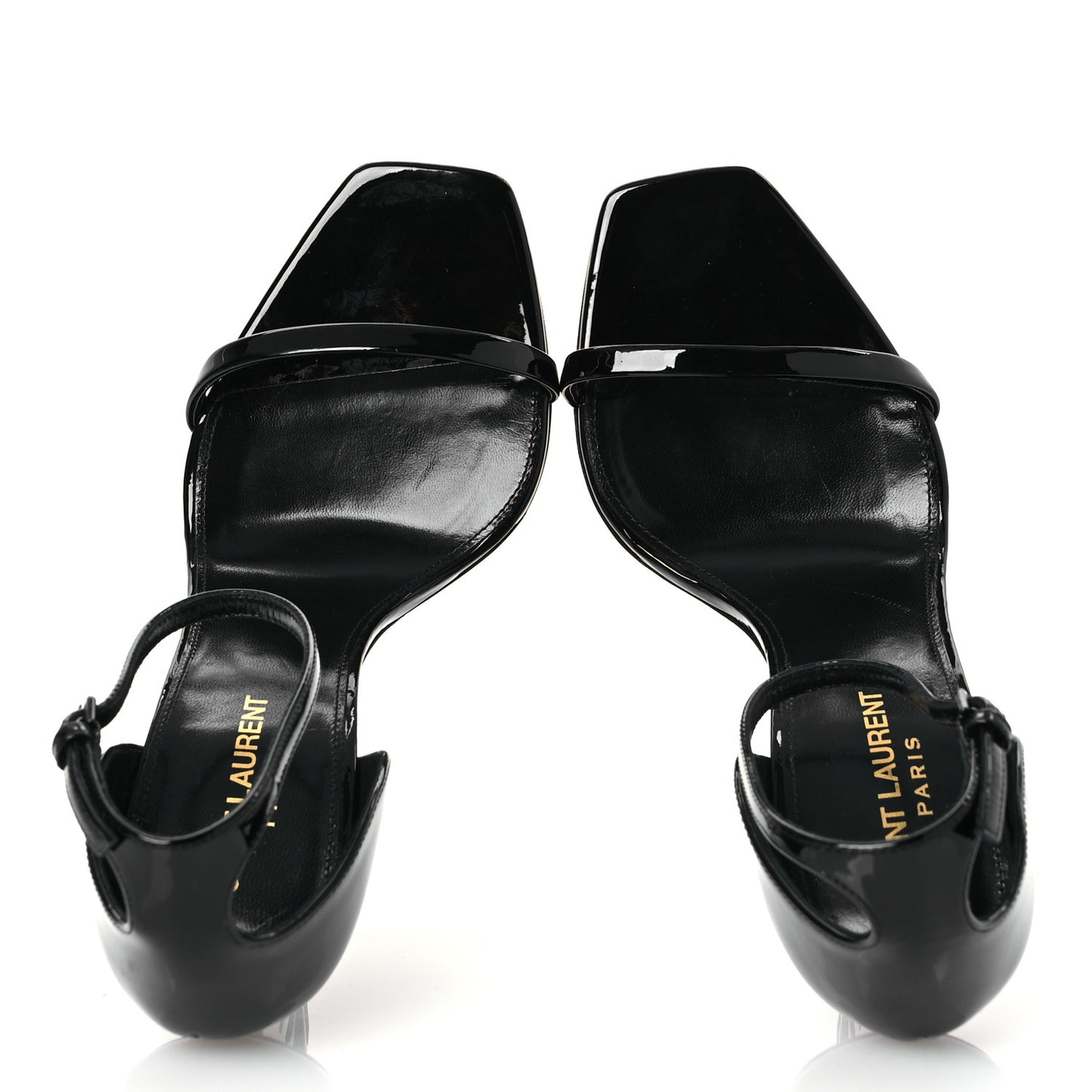 This is an authentic pair of SAINT LAURENT Patent Calfskin Opyum 110 Sandals size 38.5 in Black. They are crafted of black patent leather, feature an open toe, sleek ankle straps with a side buckle, and 4.75-inch YSL initial heels.Follow this item for alerts. Saint Laurent is a registered trademark of Saint Laurent. FASHIONPHILE is not affiliated with Saint Laurent.
