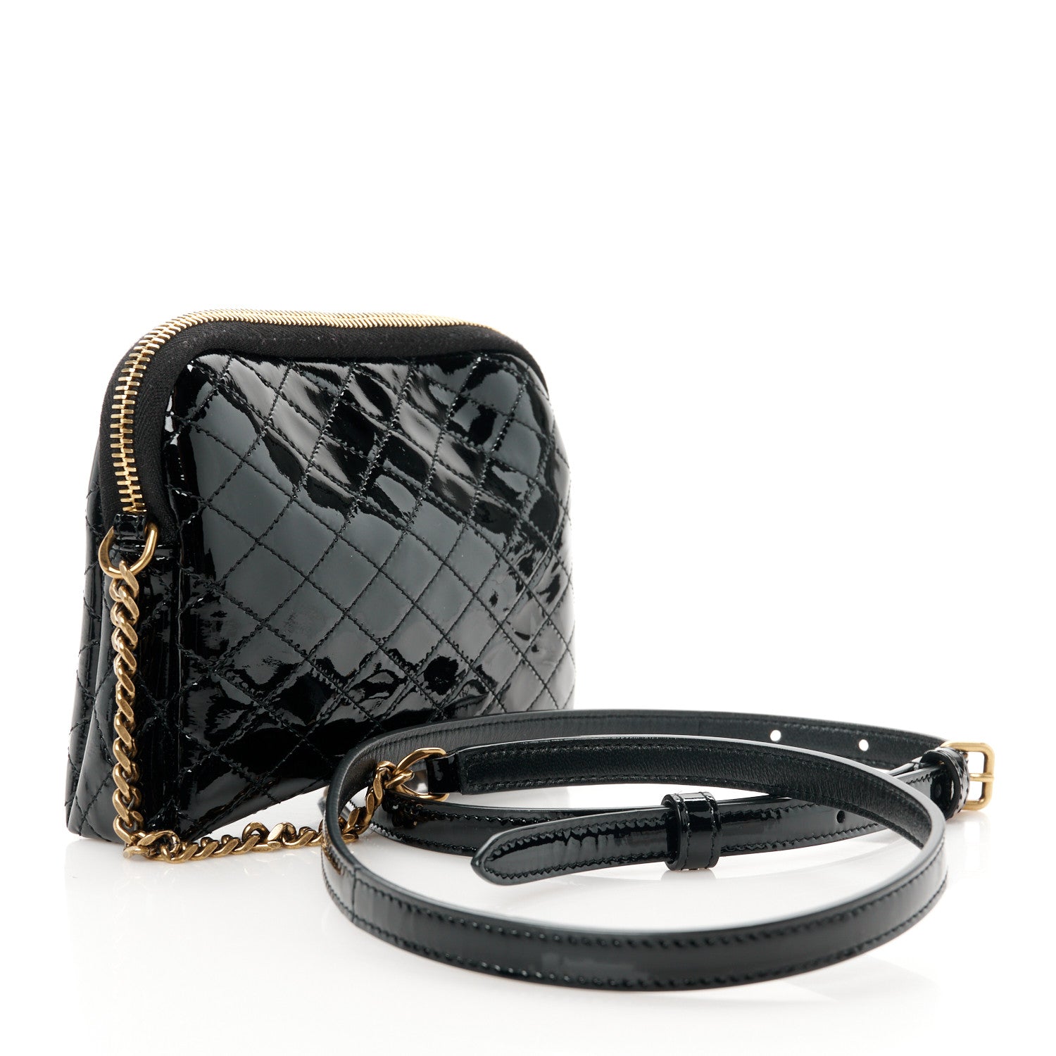 This is an authentic SAINT LAURENT Patent Quilted Gaby Zipped Pouch in Black. This elegant shoulder bag is crafted of diamond quilted lambskin in black. The bag features a leather and aged gold chain shoulder strap and a signature prominent aged gold tone YSL monogram detail. The top zipper opens to a black leather interior.Follow this item for alerts. Saint Laurent is a registered trademark of Saint Laurent. FASHIONPHILE is not affiliated with Saint Laurent.