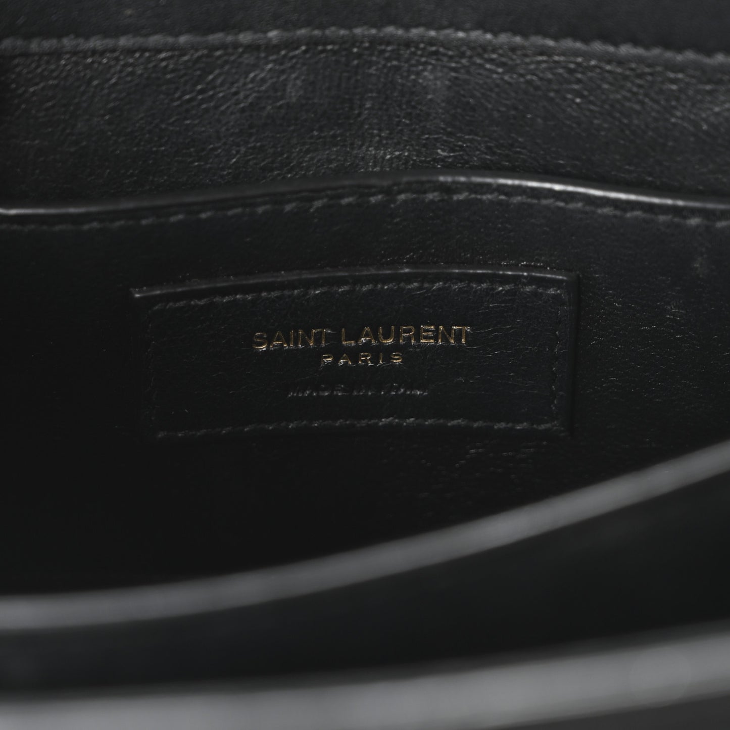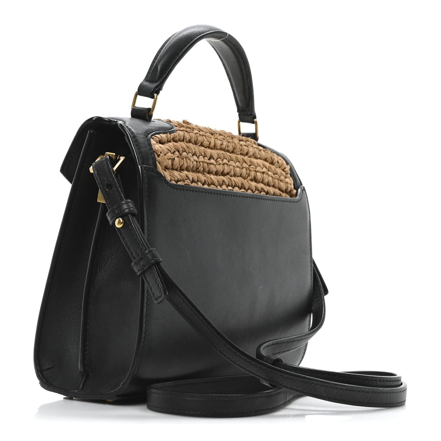 Saint Laurent/ Bags/ Shoulder Bags /Saint Laurent Raffia Calfskin Mini Classic Monogram Cassandra Top Handle Black Natural