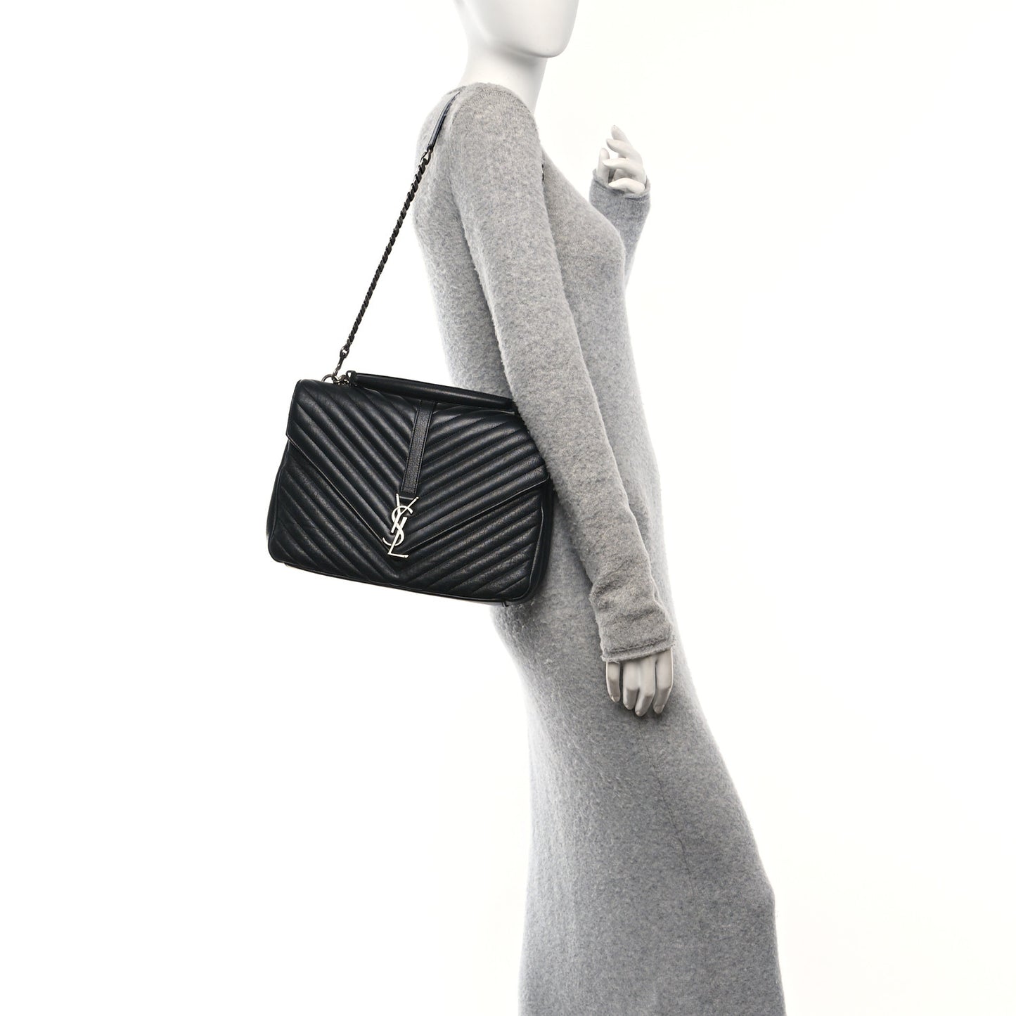 Saint Laurent/ Bags/ Shoulder Bags /Saint Laurent Sheepskin Matelasse Chevron Monogram Large College Satchel Black