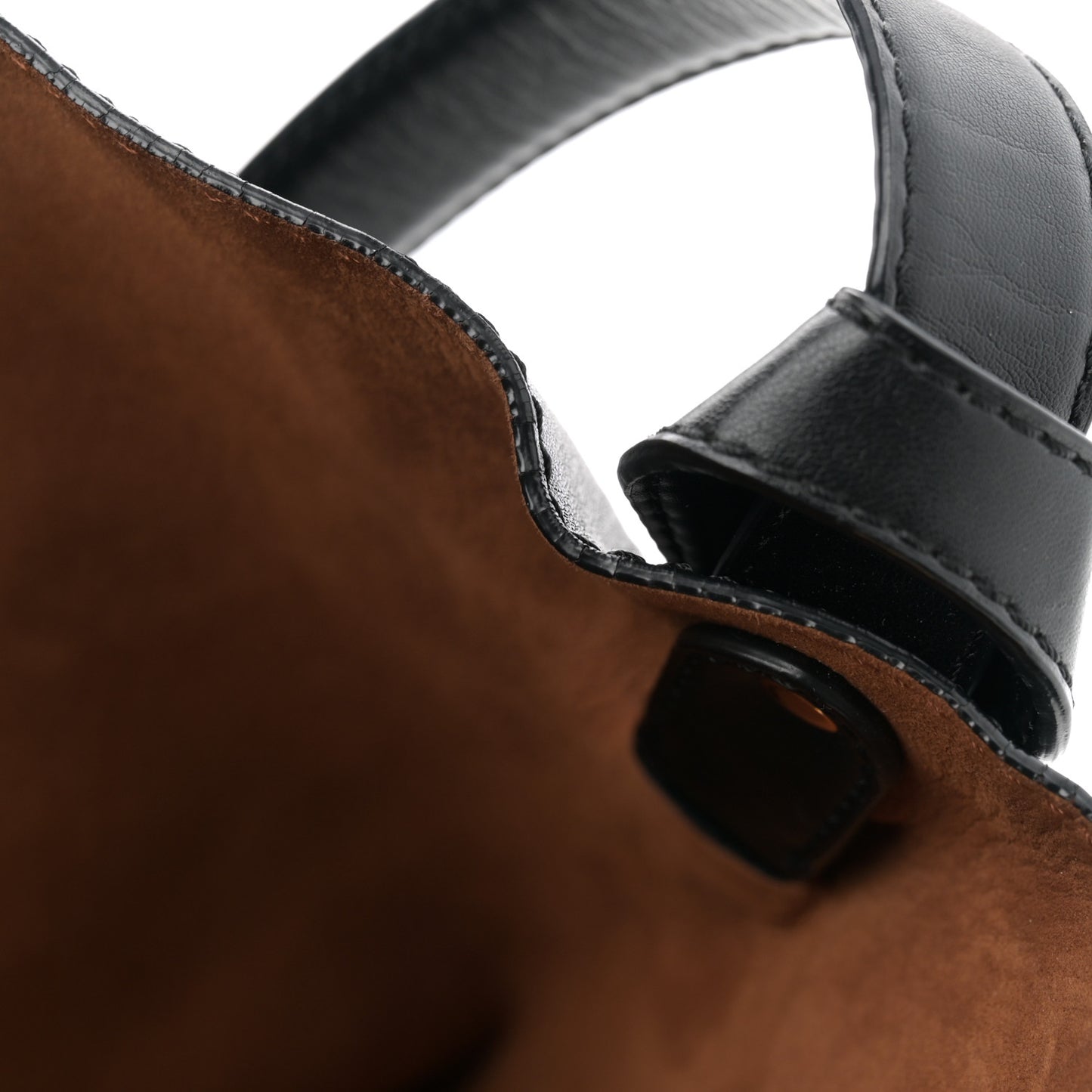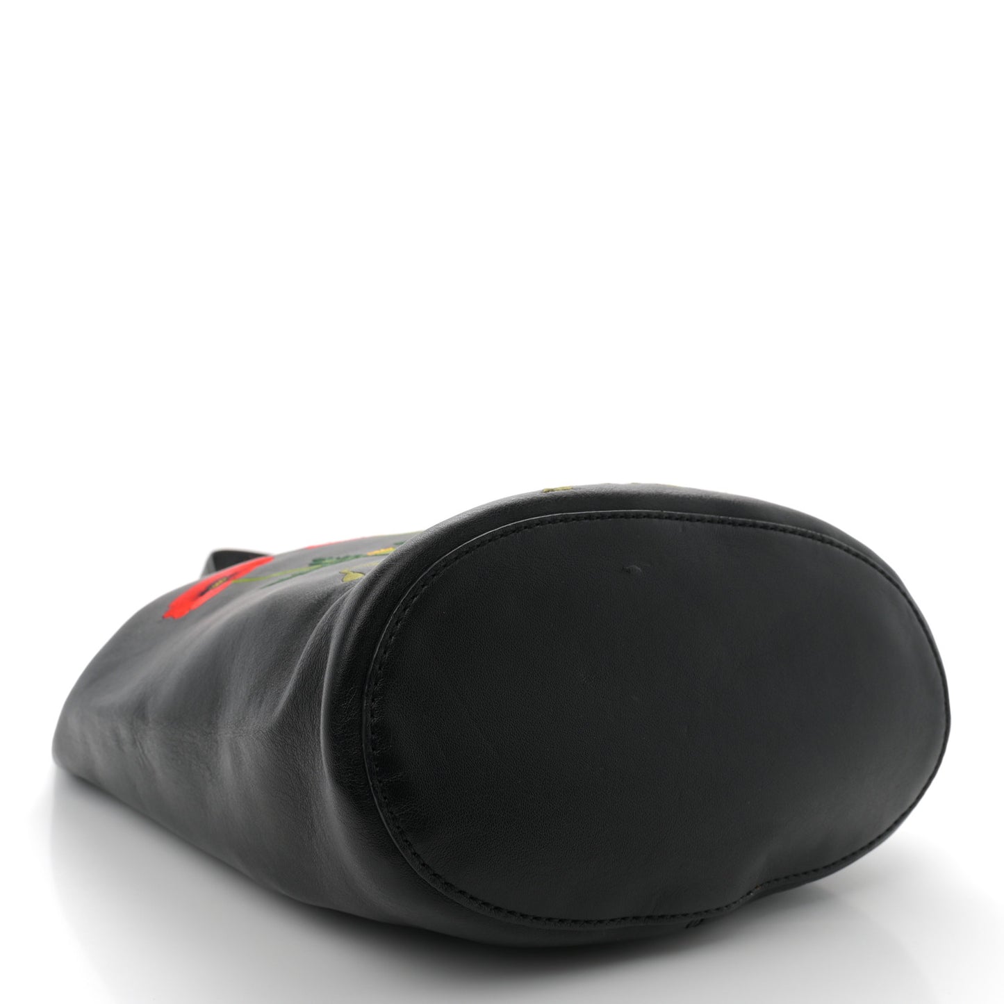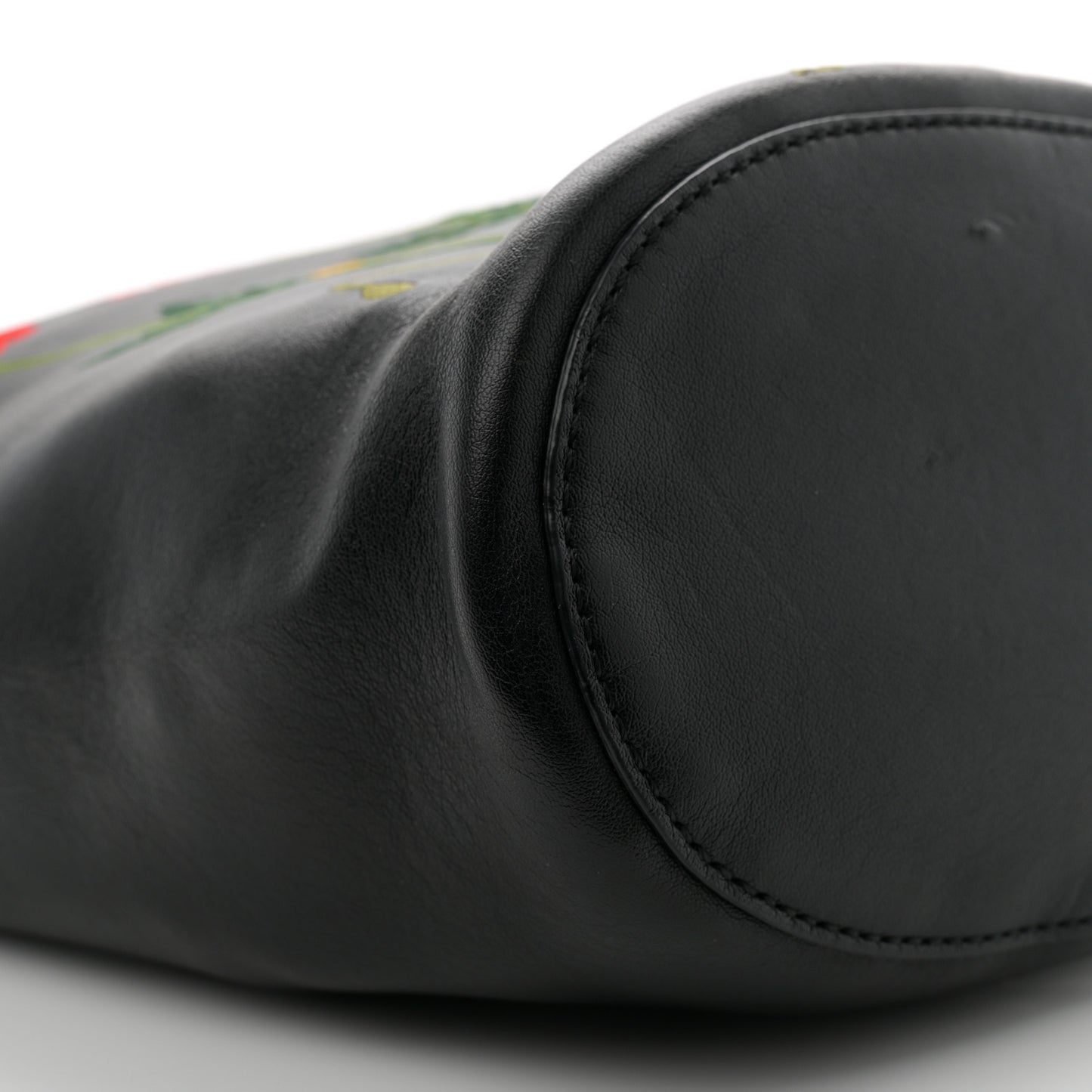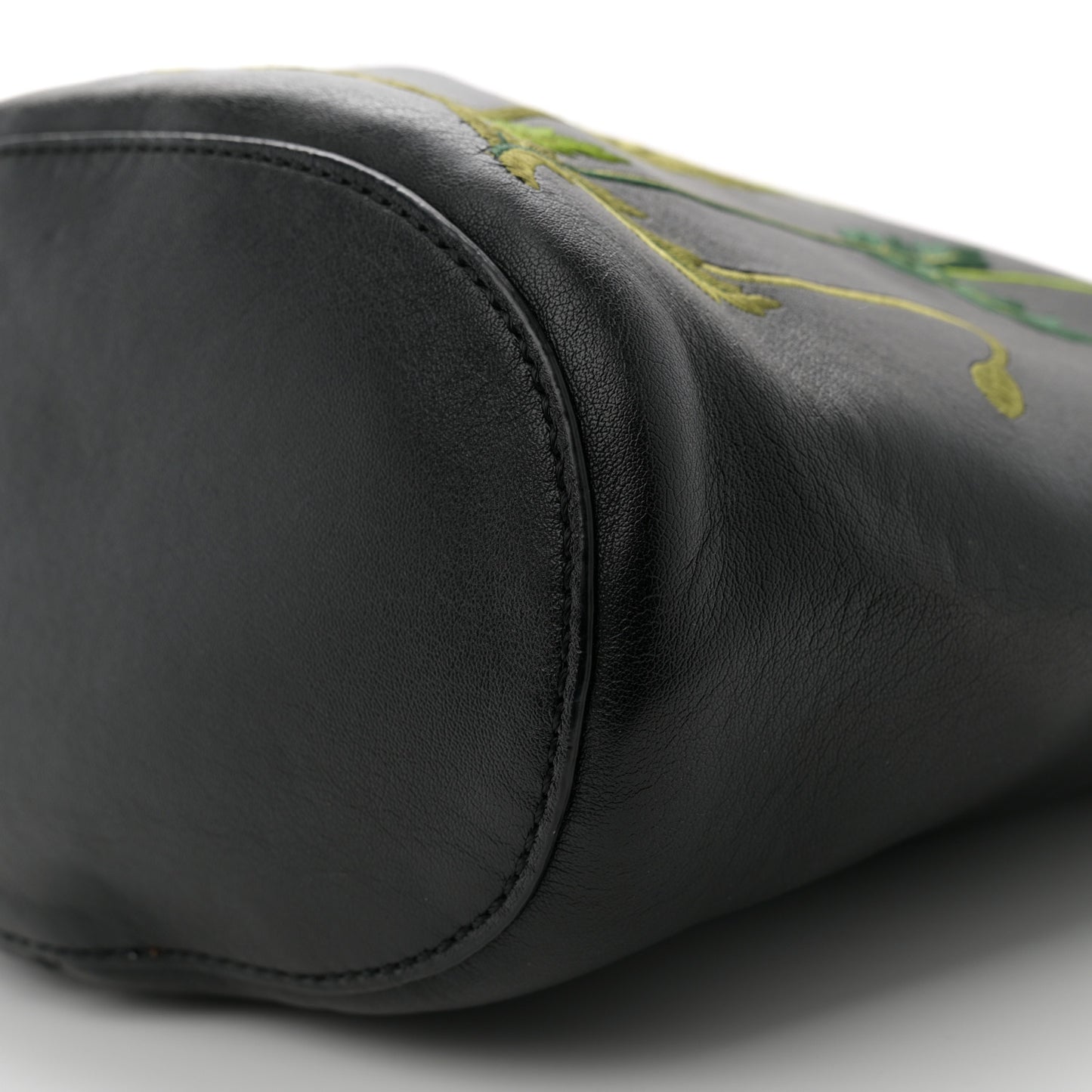 Eco Alter Nappa Embroidered Flower Bucket Bag Black