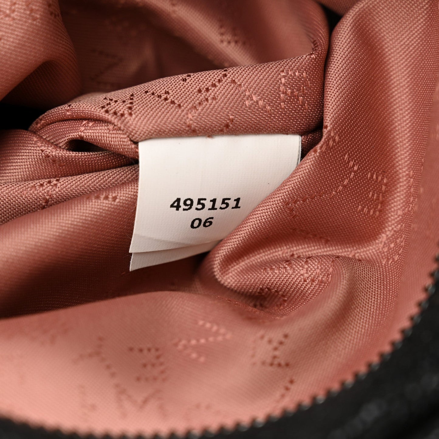 This is an authentic STELLA MCCARTNEY Shaggy Deer Small Falabella Tote in Black. This chic tote is crafted of fine shimmery faux leather in black. The bag is bordered with a polished silver chain links that extend into matching shoulder straps. The bag opens with a magnet to a rosy pink Stella McCartney monogram jacquard fabric interior with a zipper pocket.Follow this item for alerts. Stella McCartney is a registered trademark of Stella McCartney. FASHIONPHILE is not affiliated with Stella McCartney.