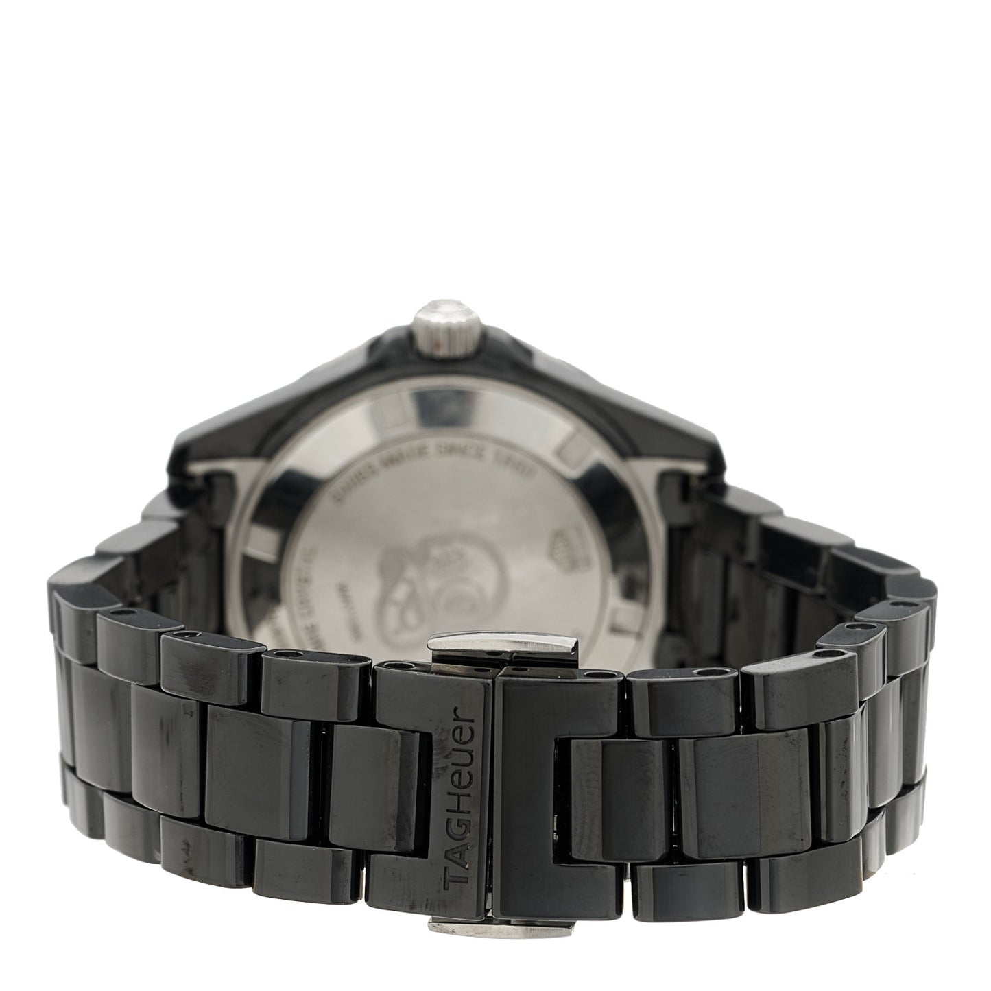 This is an authentic TAG HEUER Ceramic Diamond Bezel 35mm Aquaracer Lady Quartz Watch Black WAY1395. This watch is crafted of stainless steel and features a black dial, diamond bezel, luminous hands and hour markers, sapphire crystal, and a quartz movement.Follow this item for alerts. Tag Heuer is a registered trademark of Tag Heuer. FASHIONPHILE is not affiliated with Tag Heuer.