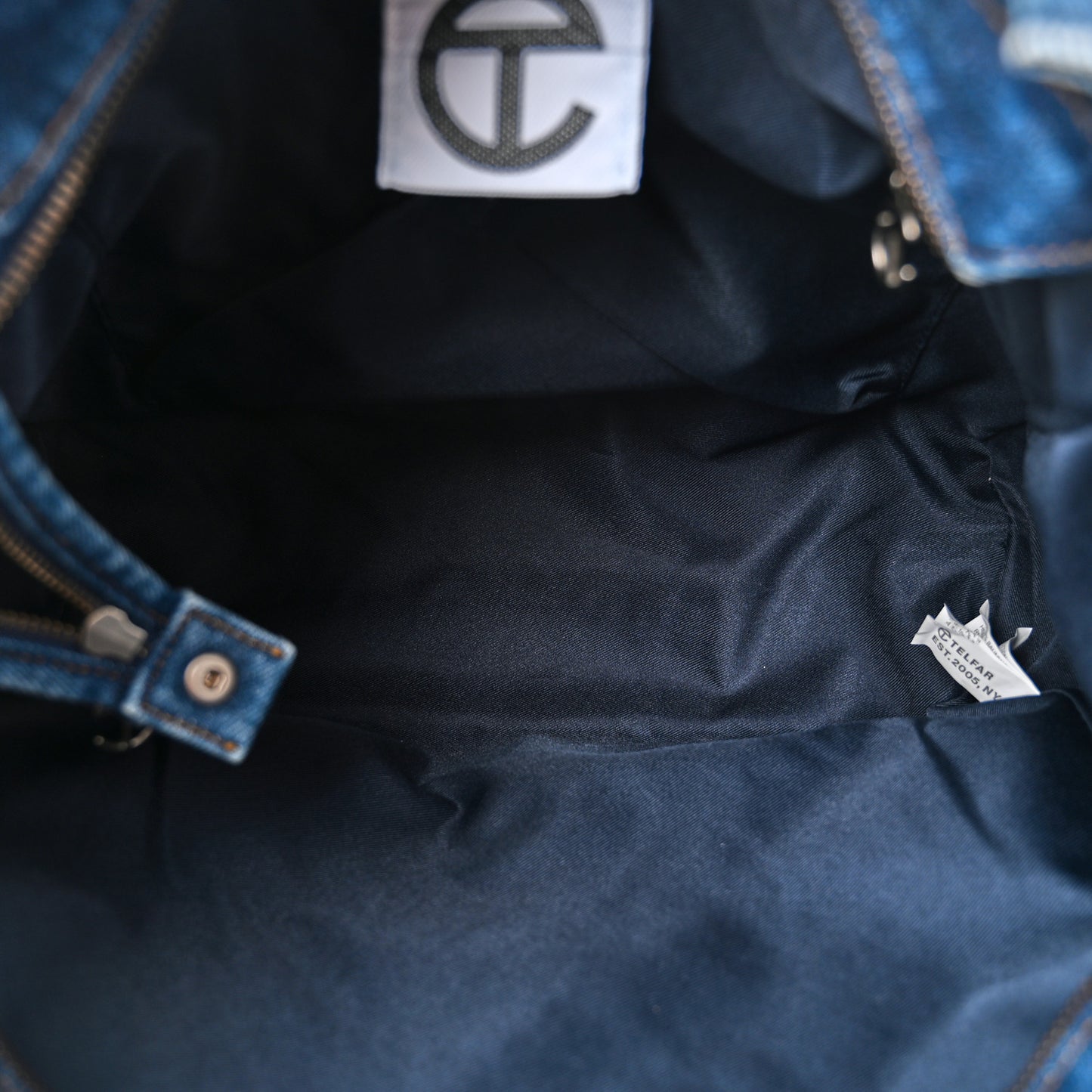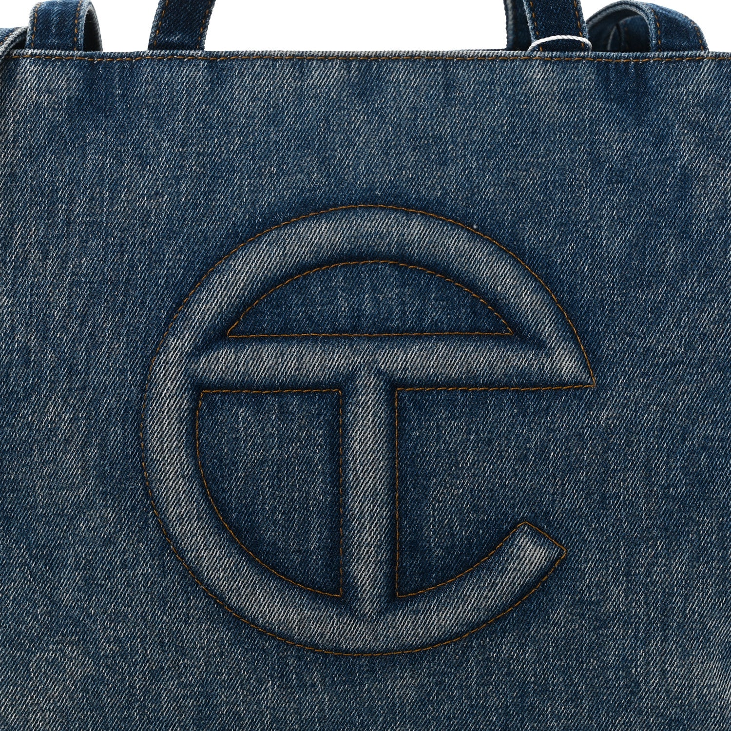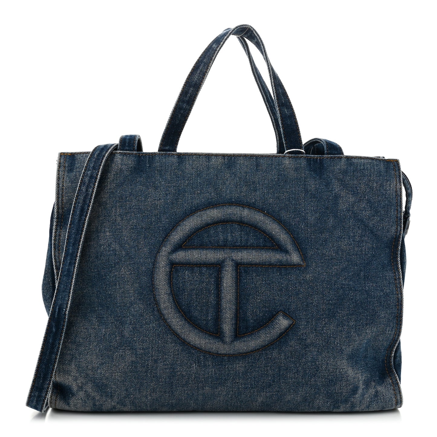 This is an authentic TELFAR Denim Medium Shopping Bag in Blue. This mini tote is constructed of denim in blue with a Telfar logo at the front. The shoulder bag has thin handles and a long shoulder straps. The bag opens to a blue fabric interior.Follow this item for alerts. Telfar is a registered trademark of Telfar. FASHIONPHILE is not affiliated with Telfar.