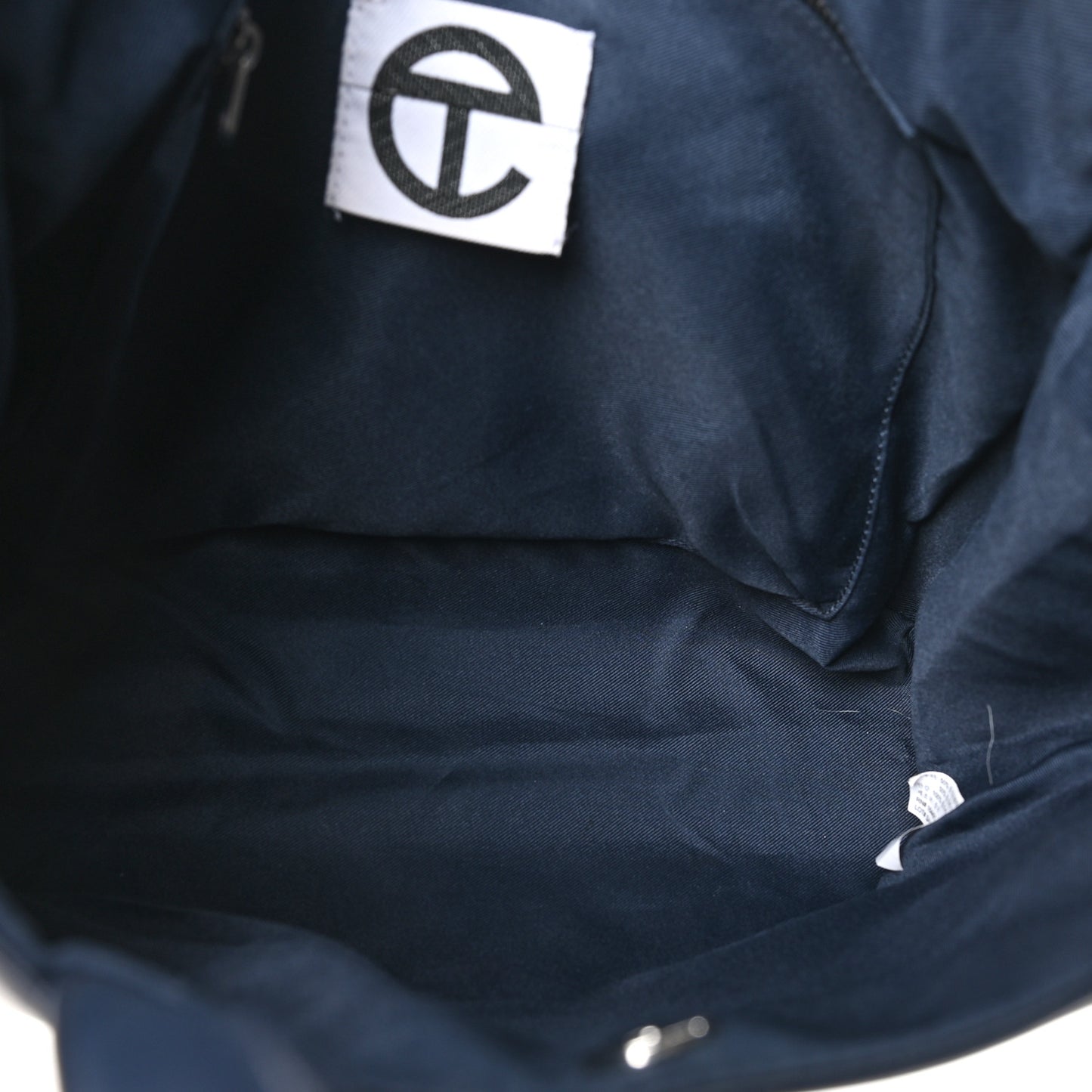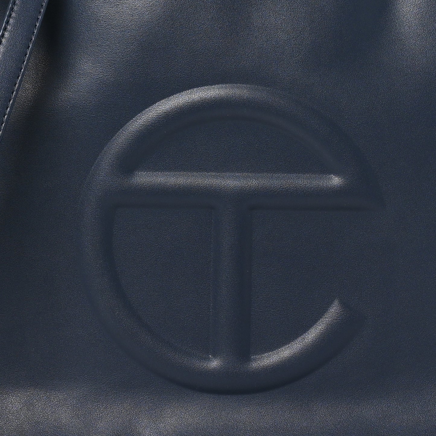 This is an authentic TELFAR Vegan Leather Medium Shopping Bag in Navy. This is a tote crafted of synthetic leather in blue with the iconic raised Telfar logo at the front. The shoulder bag has short top handles, and two long shoulder straps. The top secures with a magnet snap and opens to a blue fabric-lined interior with a zippered pocket.Follow this item for alerts. Telfar is a registered trademark of Telfar. FASHIONPHILE is not affiliated with Telfar.