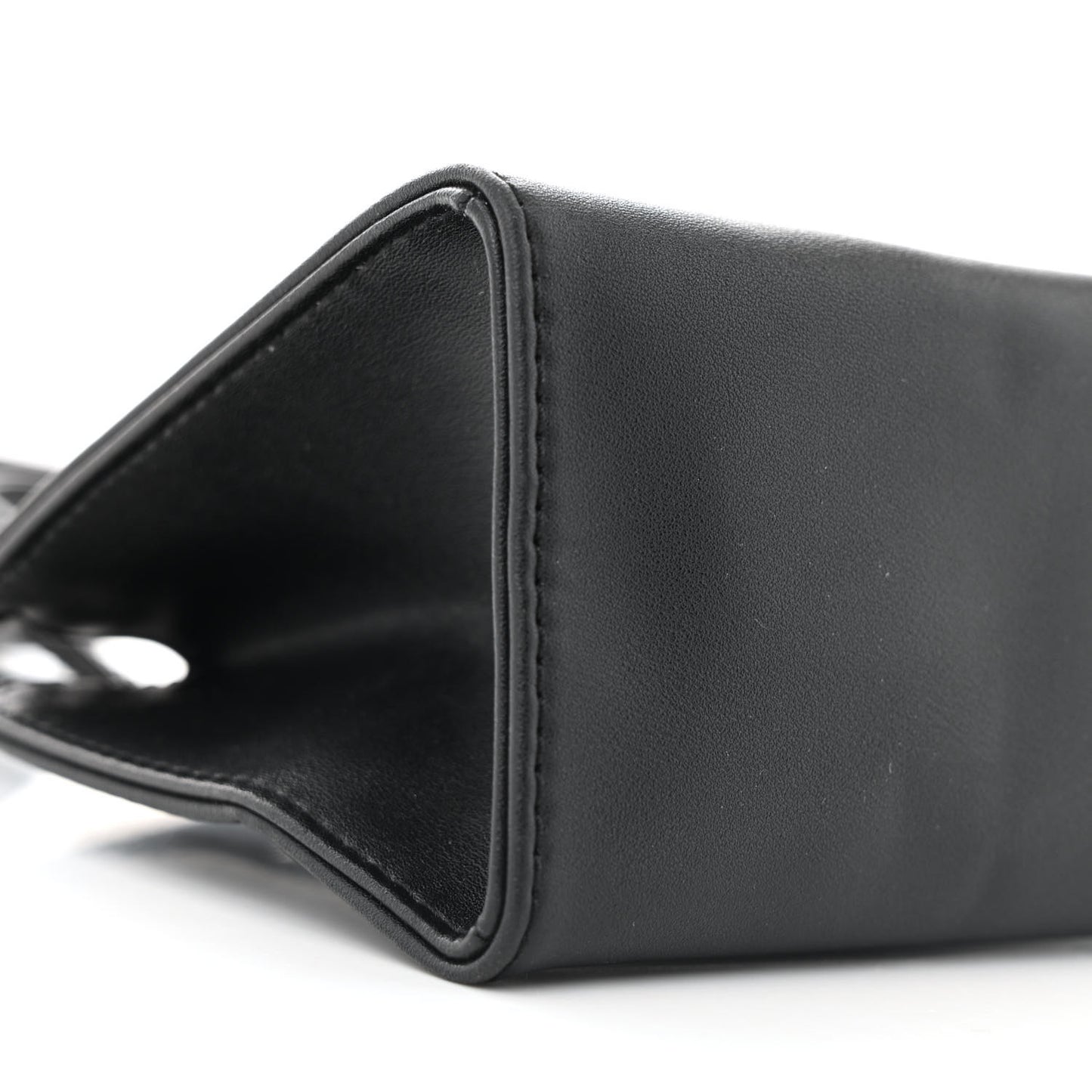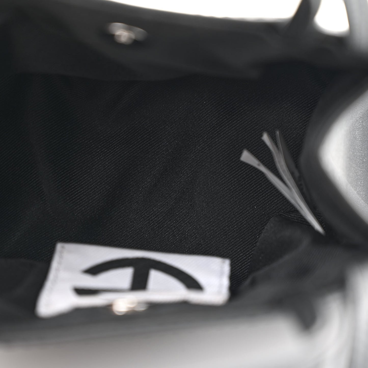 This is an authentic TELFAR Vegan Leather Small Shopping Bag in Black. This mini tote is constructed of faux leather in black with the iconic raised Telfar logo at the front. The shoulder bag has thin black handles and long crossbody straps. The bag opens to a black fabric interior.Follow this item for alerts. Telfar is a registered trademark of Telfar. FASHIONPHILE is not affiliated with Telfar.