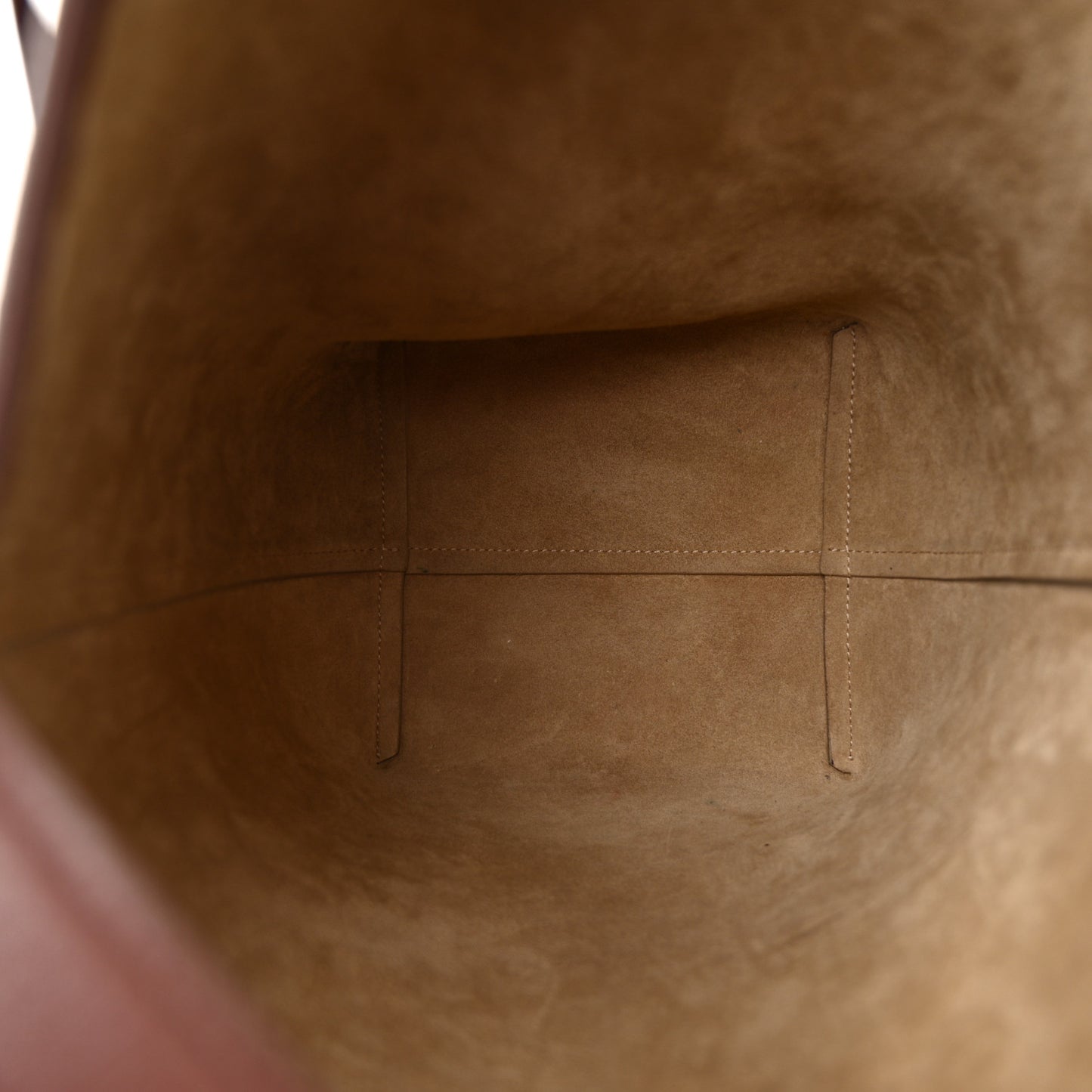 This is an authentic THE ROW Grained Calfskin Medium N/S Park Tote in Cognac. This stylish tote bag is made of grained calfskin leather in dark red. The bag features an interior toggle closure and a flat handle, complete with beige suede lining.Follow this item for alerts. The Row is a registered trademark of The Row. FASHIONPHILE is not affiliated with The Row.