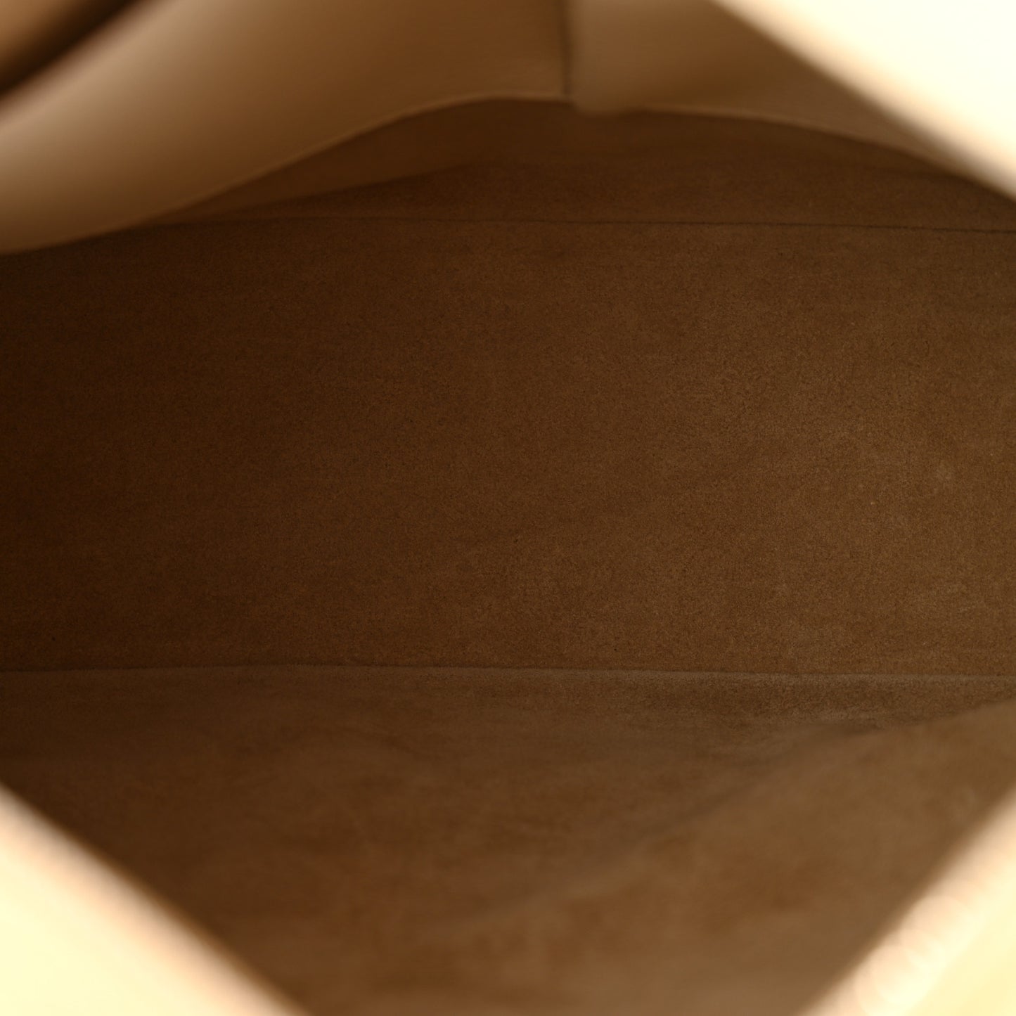 This is an authentic THE ROW Grained Calfskin Medium Portfolio Tote in Ivory. This stylish tote bag is made of lightly grained calfskin leather in off white. The tote features top handles and a zip top complete with brown suede lining.Follow this item for alerts. The Row is a registered trademark of The Row. FASHIONPHILE is not affiliated with The Row.