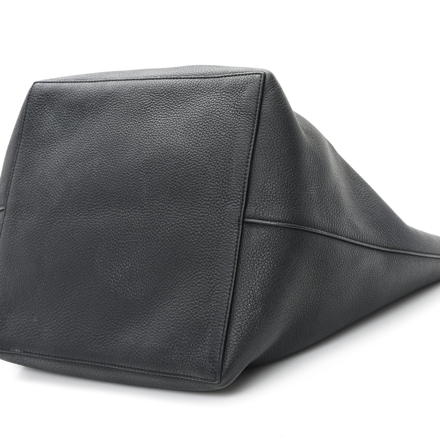 This is an authentic THE ROW Grained Calfskin Park Tote Three in Black. This stylish tote bag is made of lightly grained calfskin leather in black. The tote features flat handles and an open top complete with black suede lining.Follow this item for alerts. The Row is a registered trademark of The Row. FASHIONPHILE is not affiliated with The Row.