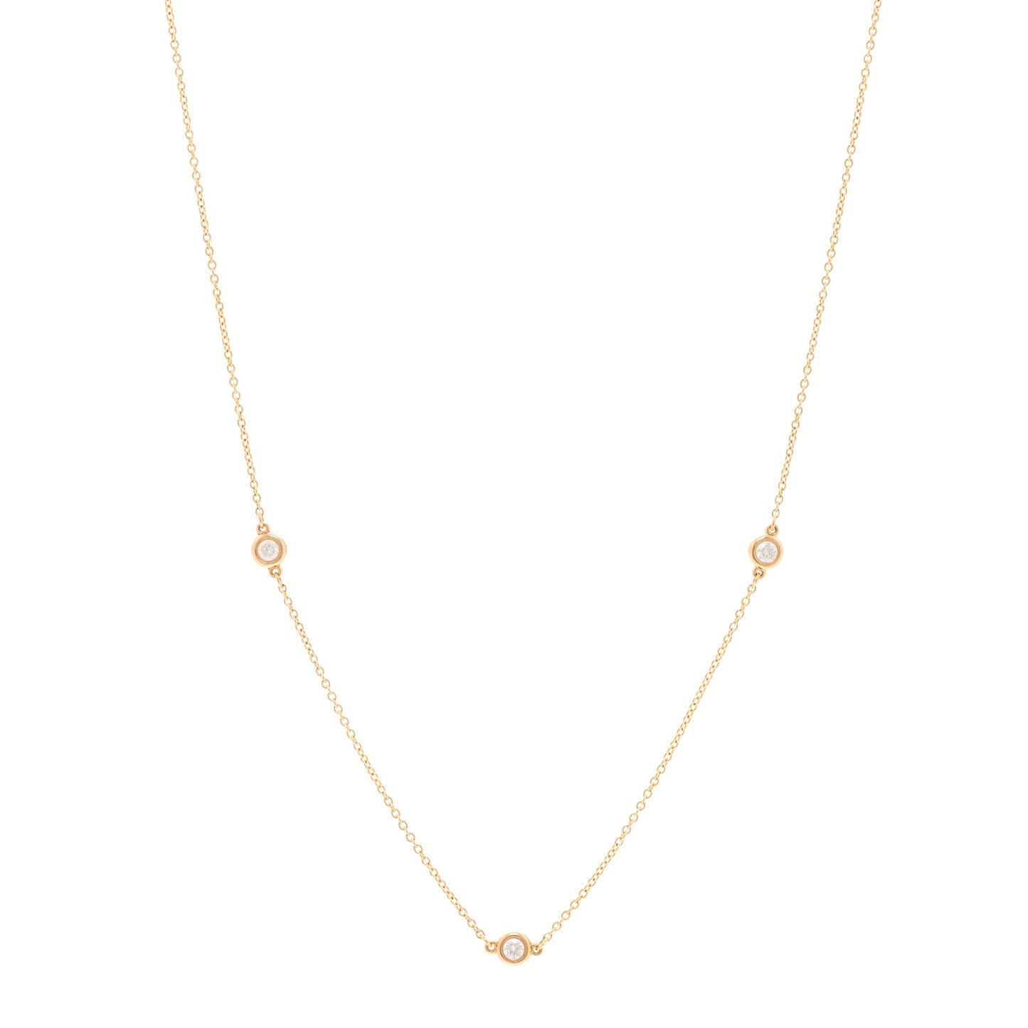 This is an authentic TIFFANY 18K Rose Gold Diamond .21ctw Elsa Peretti Diamonds by the Yard Three Station Necklace. The necklace is crafted of 18 karat rose gold and features three stationed bezel-set round brilliant cut diamonds, approximately .21 total carat weight.Follow this item for alerts. Tiffany is a registered trademark of Tiffany. FASHIONPHILE is not affiliated with Tiffany.