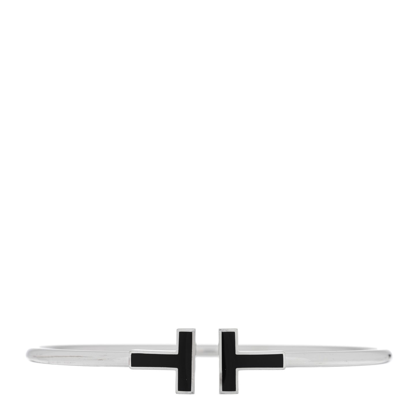 This is an authentic TIFFANY 18K White Gold Black Onyx T Wire Bracelet. The bracelet is crafted of 18 karat white gold and features two black onyx inlayed 'T' motifs on either end of a flexible wire cuff.Follow this item for alerts. Tiffany is a registered trademark of Tiffany. FASHIONPHILE is not affiliated with Tiffany.