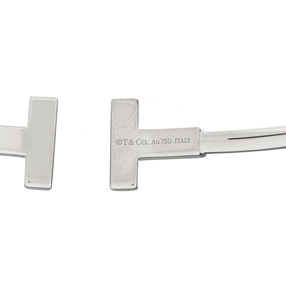 This is an authentic TIFFANY 18K White Gold T Wire Bracelet. The bracelet is crafted of 18 karat white gold and features two stylized T motifs on either end of a flexible open cuff.Follow this item for alerts. Tiffany is a registered trademark of Tiffany. FASHIONPHILE is not affiliated with Tiffany.