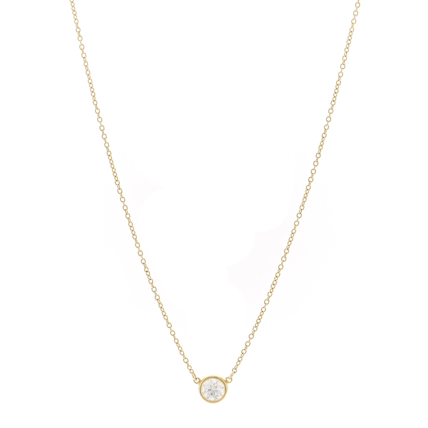 This is an authentic TIFFANY 18K Yellow Gold Diamond .41ct Elsa Peretti Diamonds by the Yard Pendant Necklace. The necklace is crafted of 18 karat yellow gold and features a bezel-set round brilliant cut diamond, approximately .41 carat with H color and VS1 clarity.Follow this item for alerts. Tiffany is a registered trademark of Tiffany. FASHIONPHILE is not affiliated with Tiffany.