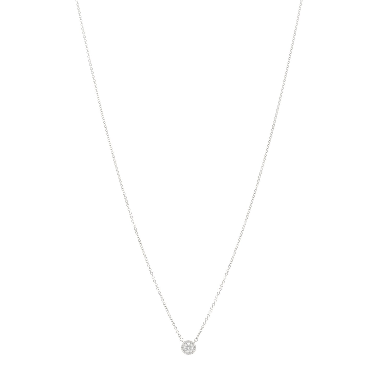 This is an authentic TIFFANY Platinum Diamond Soleste Pendant Necklace. The necklace is crafted of platinum and features a polished chain and a round station pendant pave-set with diamonds framing a round brilliant cut center diamond, approximately .16 total carat weight.Follow this item for alerts. Tiffany is a registered trademark of Tiffany. FASHIONPHILE is not affiliated with Tiffany.