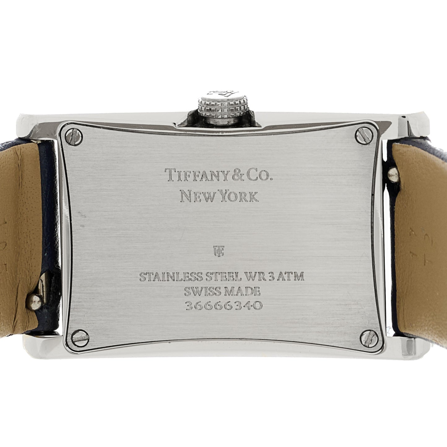 This is an authentic TIFFANY Stainless Steel Calfskin 22mm East West Quartz Watch Blue. The watch is crafted of stainless steel and features an "east/west" facing dial, silver Arabic numeral hour markers, blue calfskin strap, and a quartz movement.Follow this item for alerts. Tiffany is a registered trademark of Tiffany. FASHIONPHILE is not affiliated with Tiffany.