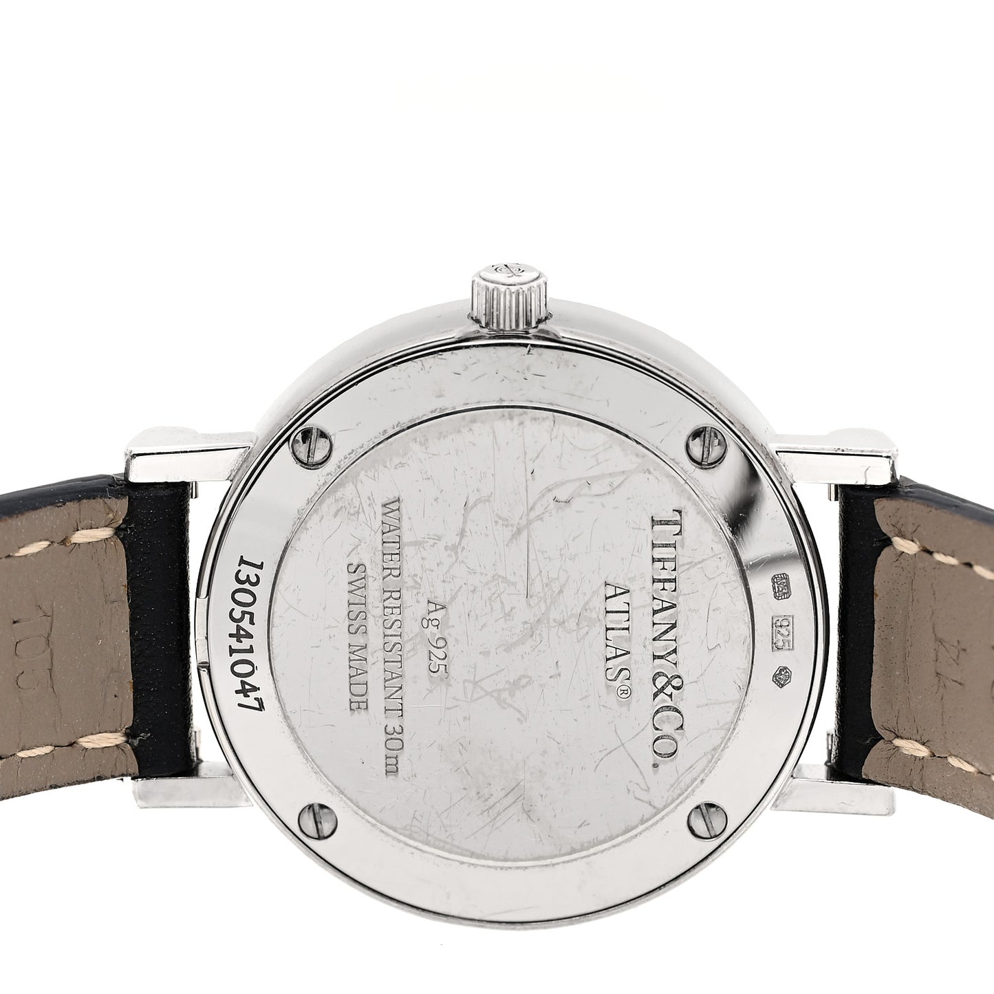 This is an authentic TIFFANY Sterling Silver Calfskin 29mm Atlas Quartz Watch Black. This watch is crafted of sterling silver and features a white dial, Roman numeral bezel, black calfskin strap, sapphire crystal, and a quartz movement.Follow this item for alerts. Tiffany is a registered trademark of Tiffany. FASHIONPHILE is not affiliated with Tiffany.