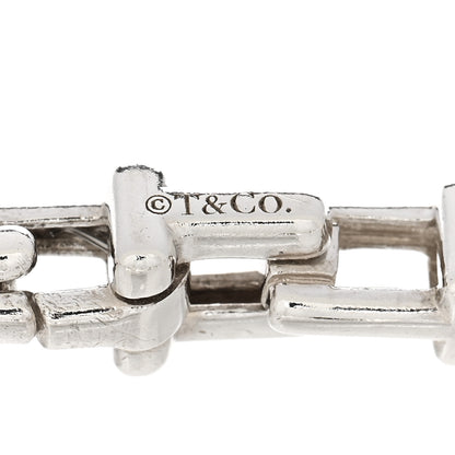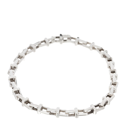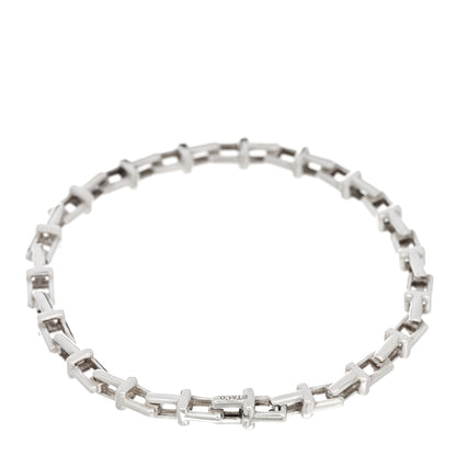 This is an authentic TIFFANY Sterling Silver Narrow T Chain Bracelet. The bracelet is crafted of sterling silver and features interlocking T-shaped links and a matching lobster clasp.Follow this item for alerts. Tiffany is a registered trademark of Tiffany. FASHIONPHILE is not affiliated with Tiffany.