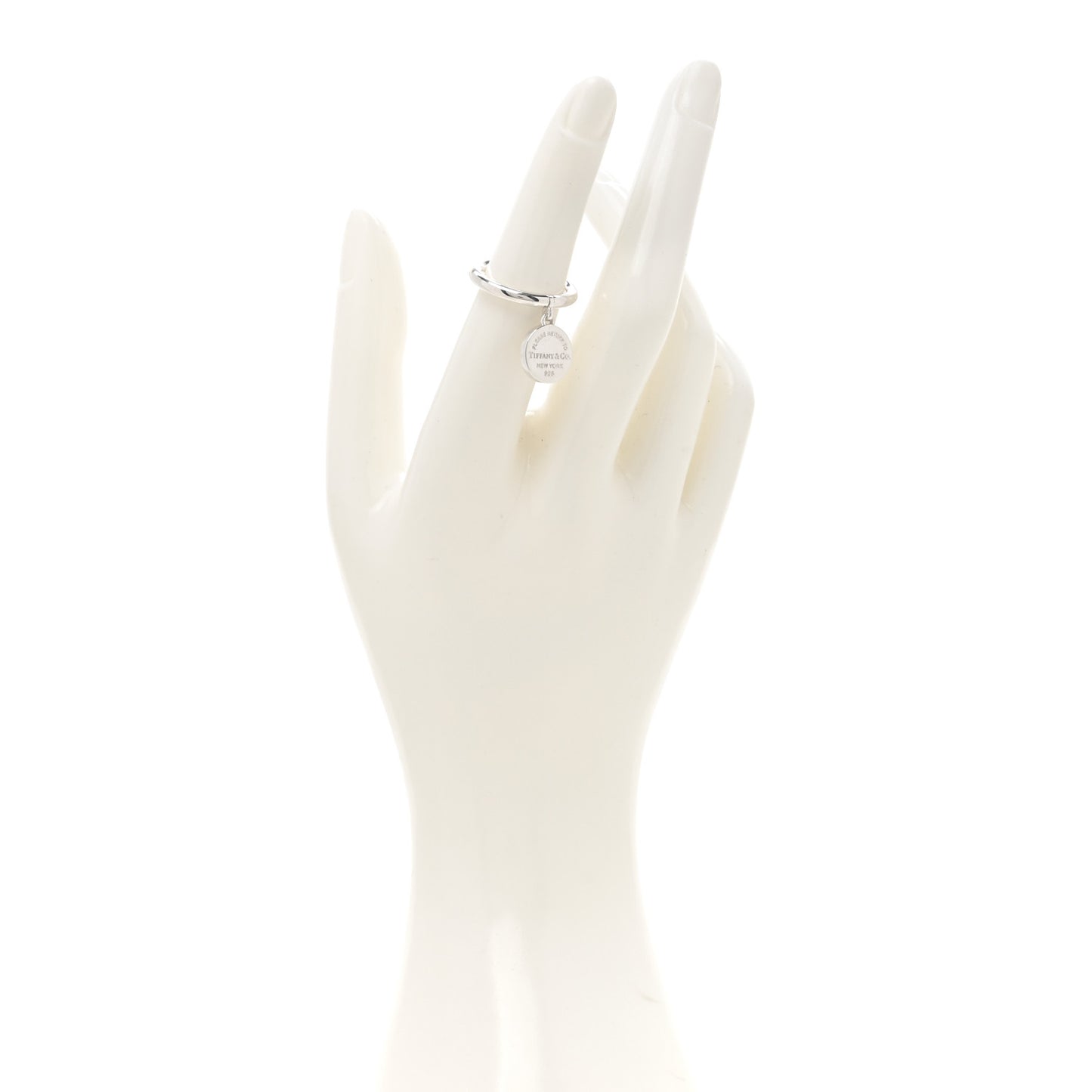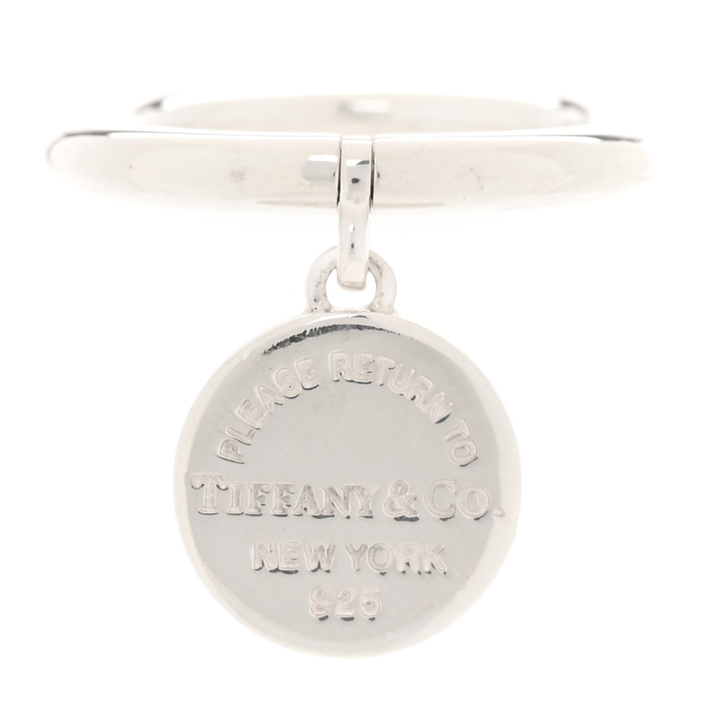 This is an authentic Tiffany Sterling Silver Return to Tiffany Round Charm Ring 50 5.5. The ring is crafted of sterling silver and features a round dangling charm engraved with the classic Return To Tiffany logo.Follow this item for alerts. Tiffany is a registered trademark of Tiffany. FASHIONPHILE is not affiliated with Tiffany.