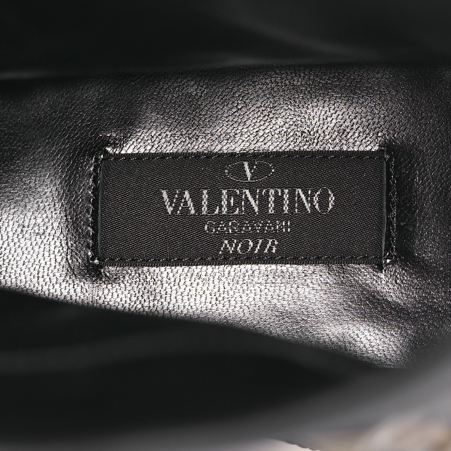 This is an authentic pair of VALENTINO GARAVANI Calfskin Rockstud Biker Boots size 40 in Black. These fabulous ankle boots have highly durable and smooth black calfskin leather. The boots feature an ankle strap with a gunmetal buckle and pyramid studs, a strap and buckle at the top, and a stacked 1.5-inch heel.Follow this item for alerts. Valentino Garavani is a registered trademark of Valentino Garavani. FASHIONPHILE is not affiliated with Valentino Garavani.