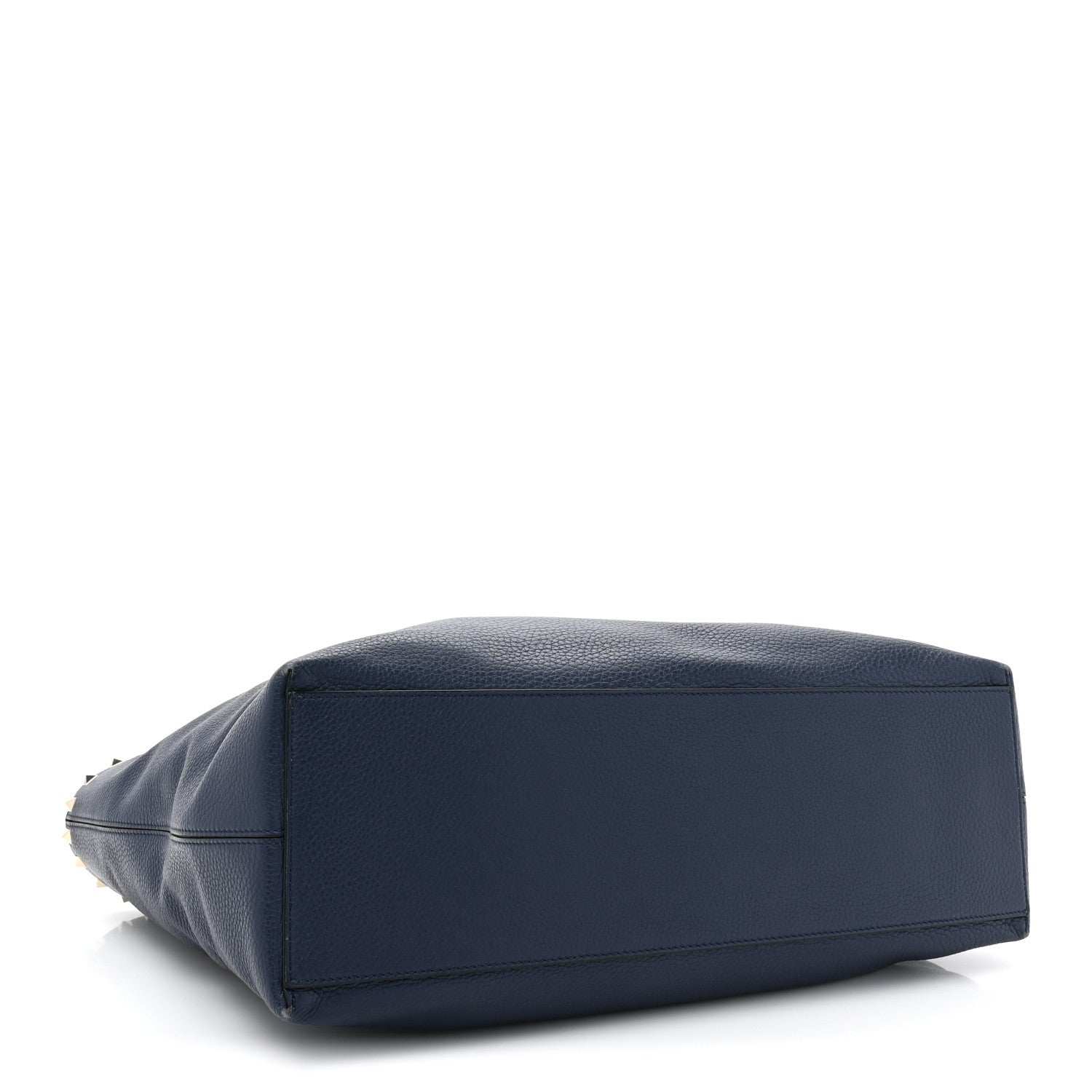 Grained Calfskin Rockstud Shoulder Tote Marine