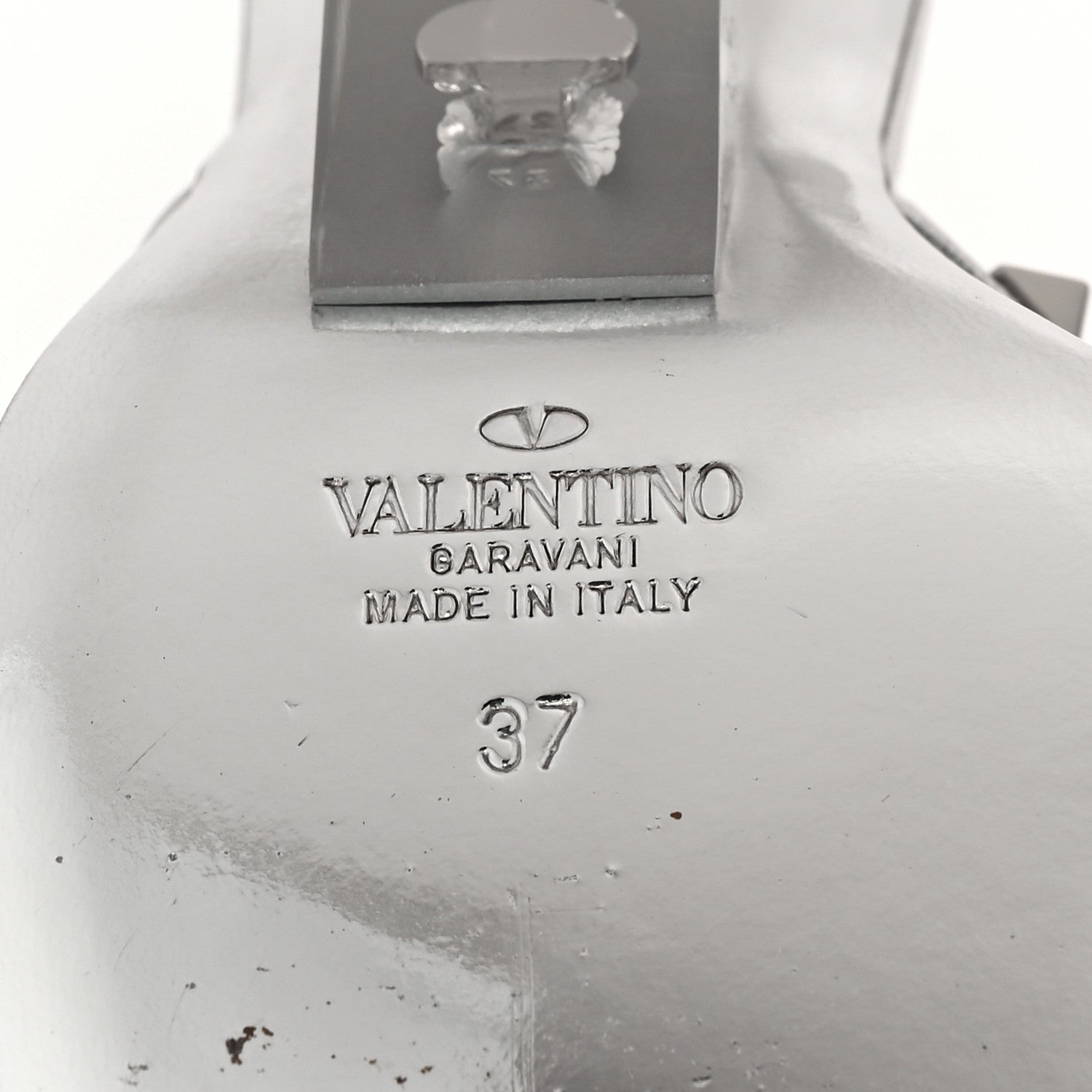 Valentino Garavani/ Accessories/ Shoes /Valentino Garavani Metallic Lambskin Plexiglass Rockstud 75mm Wedge Sandals 37 Silver Transparent