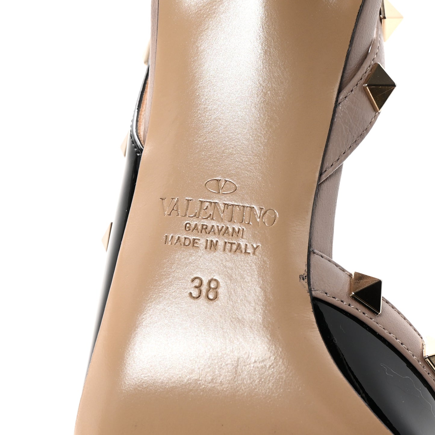 Valentino Garavani/ Accessories/ Shoes /Valentino Garavani Patent Rockstud Half d'Orsay Slingback 85mm Pumps 38 Black Poudre
