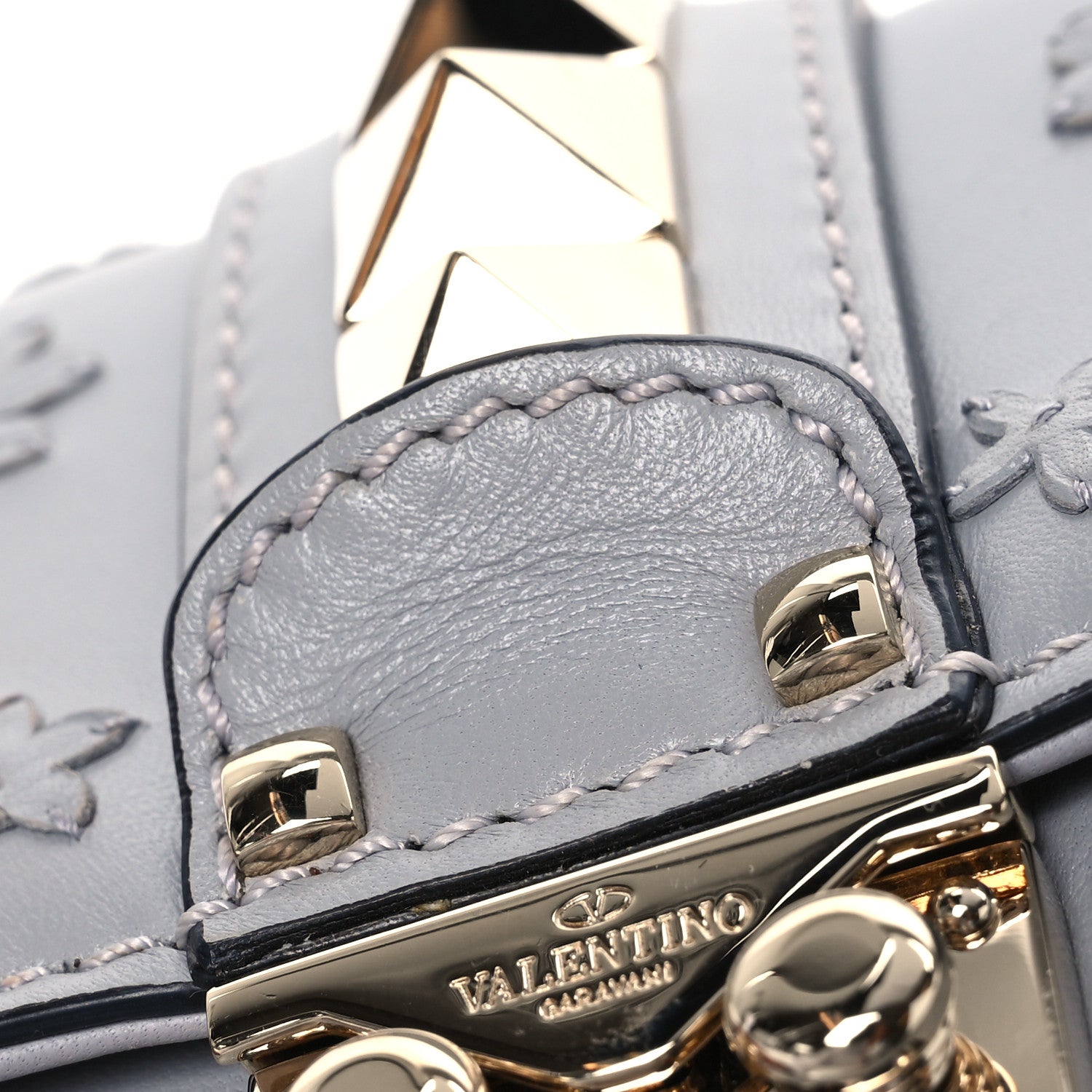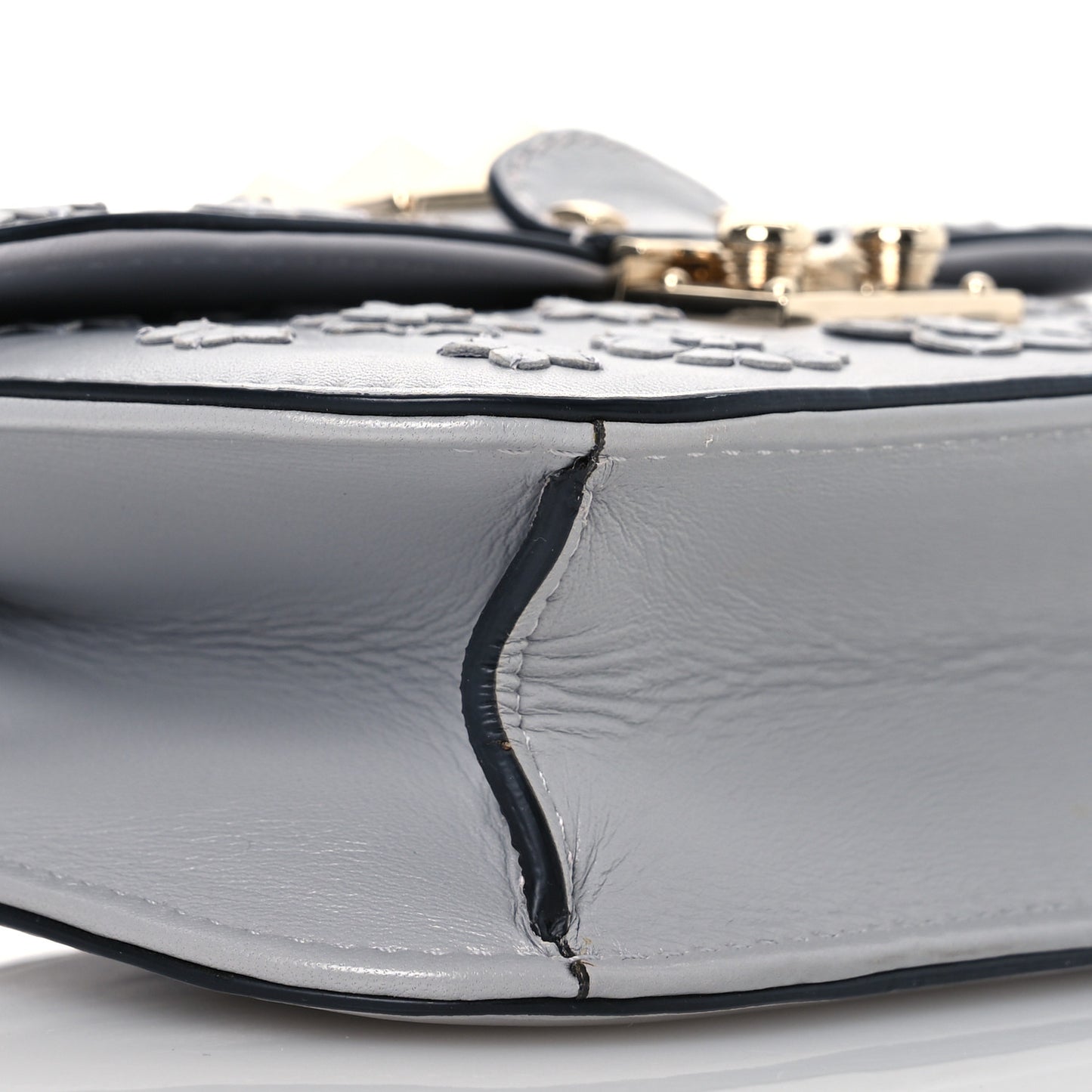 Vitello Flower Embellished Small Glam Lock Rockstud Flap Pastel Grey