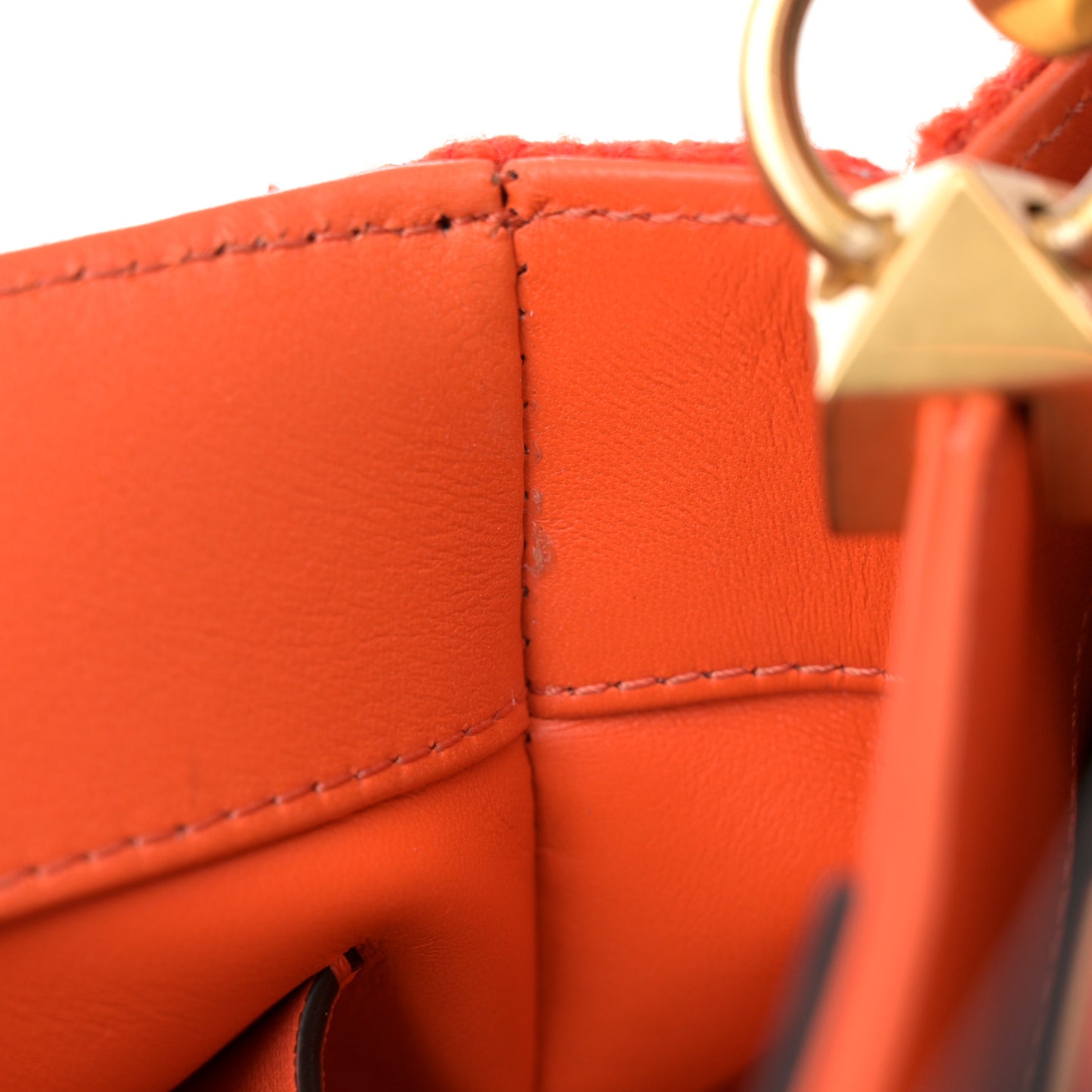 This is an authentic VALENTINO GARAVANI Wool Small Roman Stud Top Handle Bag in Titian. This chic tote bag is beautifully crafted of orange yarn with gold textured pyramid studs throughout. The bag features a gold chain shoulder strap in gold, a matching leather shoulder strap handle, a matching leather top handle, and a gold turn lock closure with a hammered effect. The top flap opens to a matching leather interior with a patch pocket.Follow this item for alerts. Valentino Garavani is a registered trademark of Valentino Garavani. FASHIONPHILE is not affiliated with Valentino Garavani.