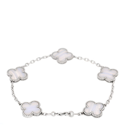 18K White Gold Chalcedony 5 Motifs Vintage Alhambra Bracelet