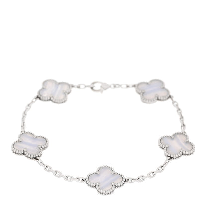 Van Cleef & Arpels/ Jewelry/ Bracelets /Van Cleef & Arpels 18K White Gold Chalcedony 5 Motifs Vintage Alhambra Bracelet